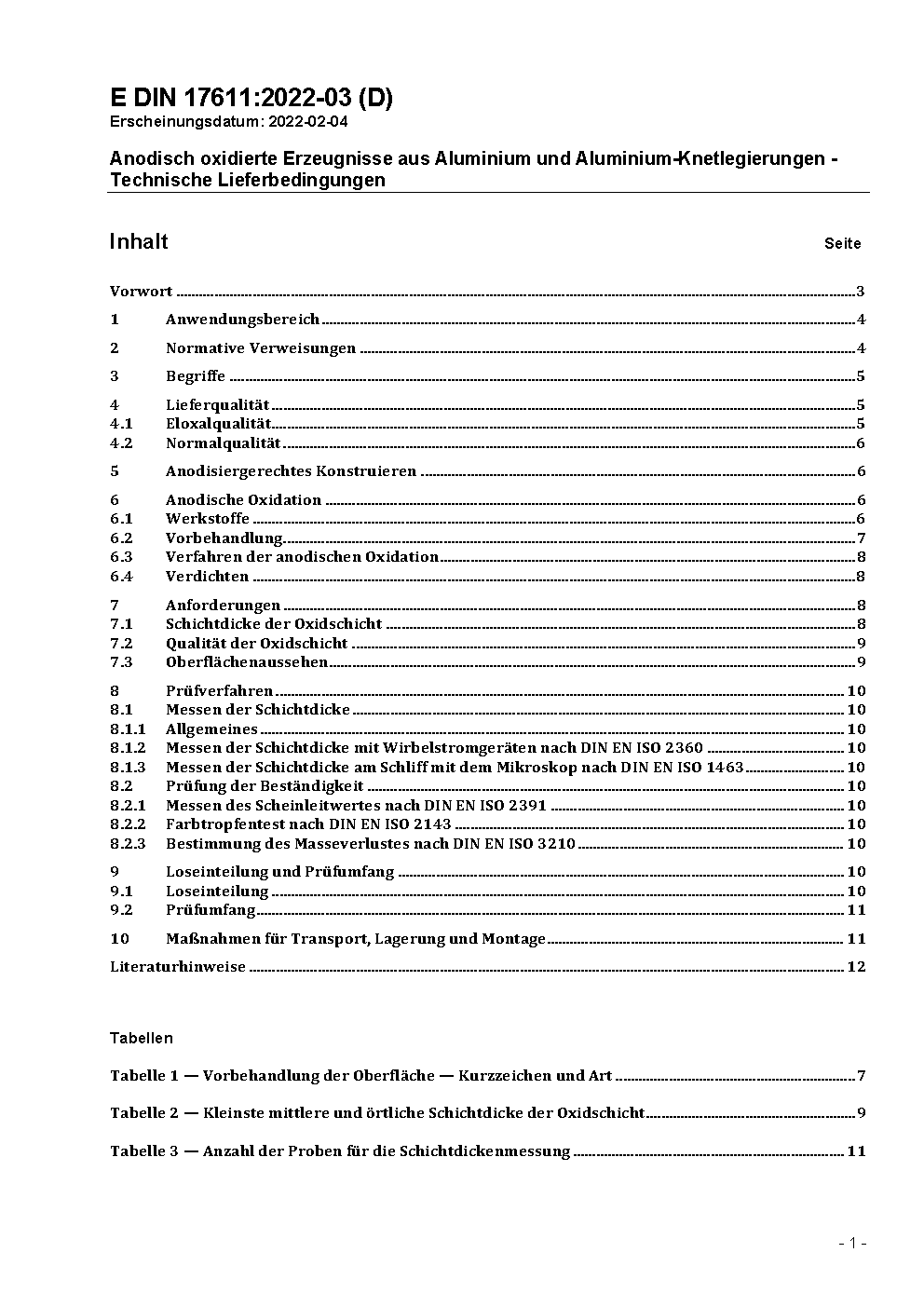 Anodisch oxidiertes Halbzeug aus Aluminium und Aluminium-Knetlegierungen mit Schichtdicken von mindestens 10 µm; Technische Lieferbedingungen