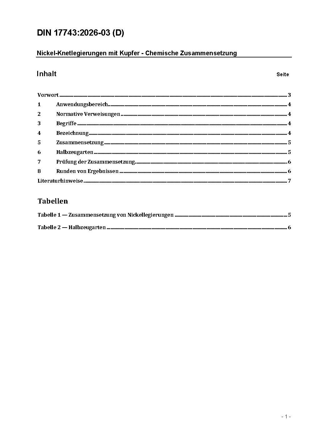 Nickel-Knetlegierungen mit Kupfer - Chemische Zusammensetzung
