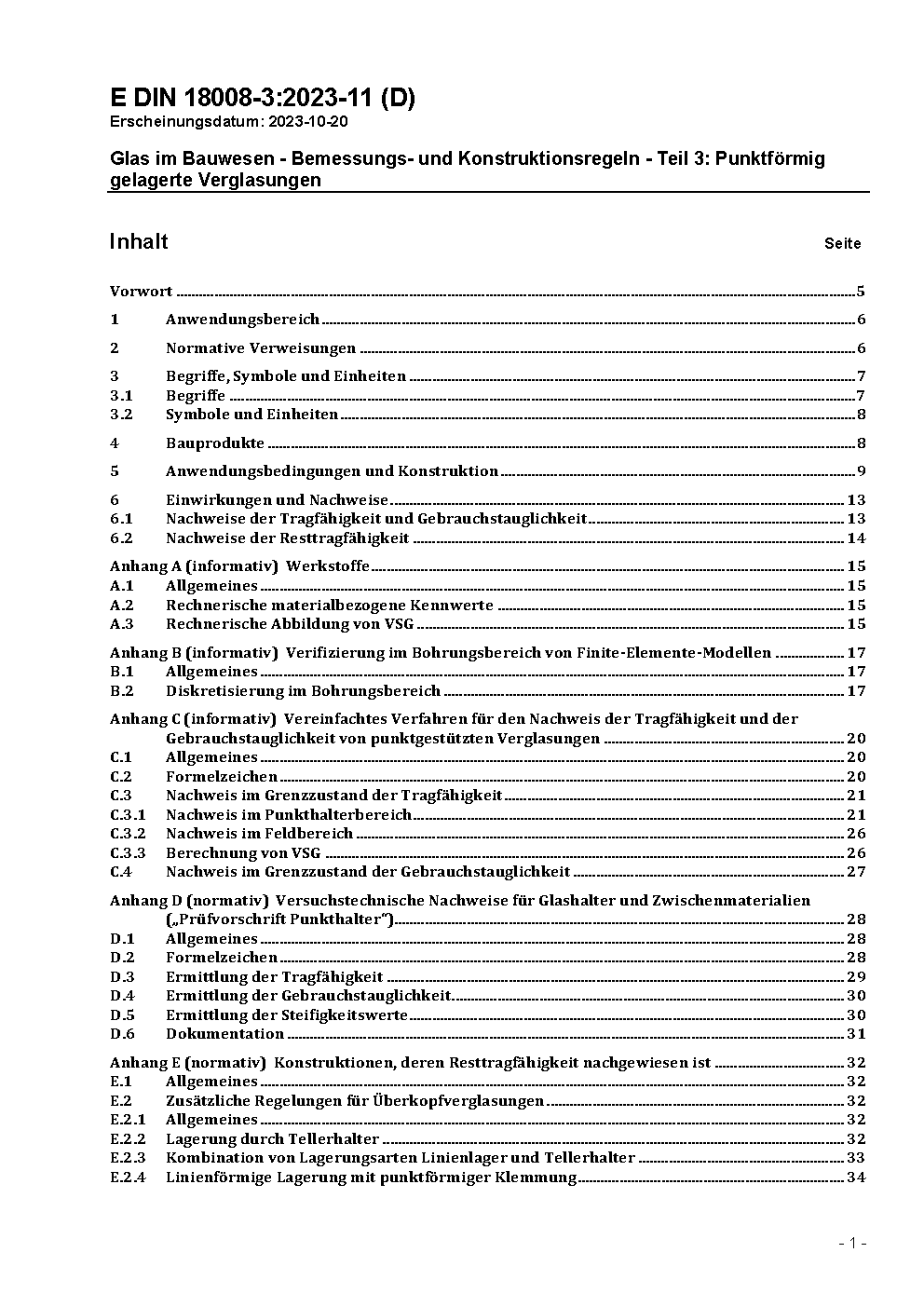 Glas im Bauwesen - Bemessungs- und Konstruktionsregeln - Teil 3: Punktförmig gelagerte Verglasungen