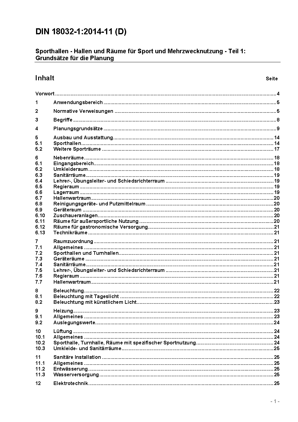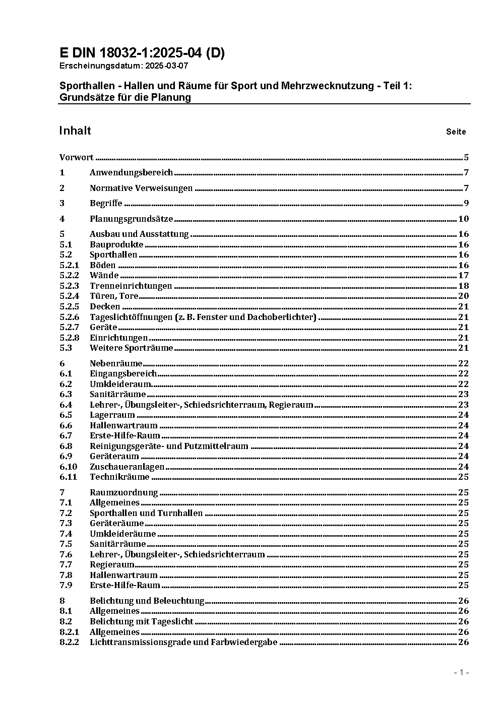 Sporthallen - Hallen und Räume für Sport und Mehrzwecknutzung - Teil 1: Grundsätze für die Planung