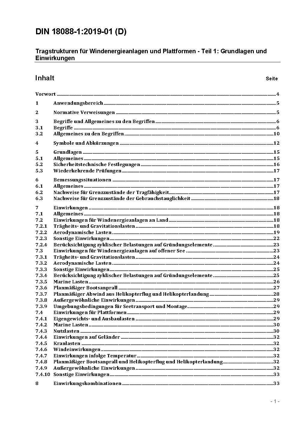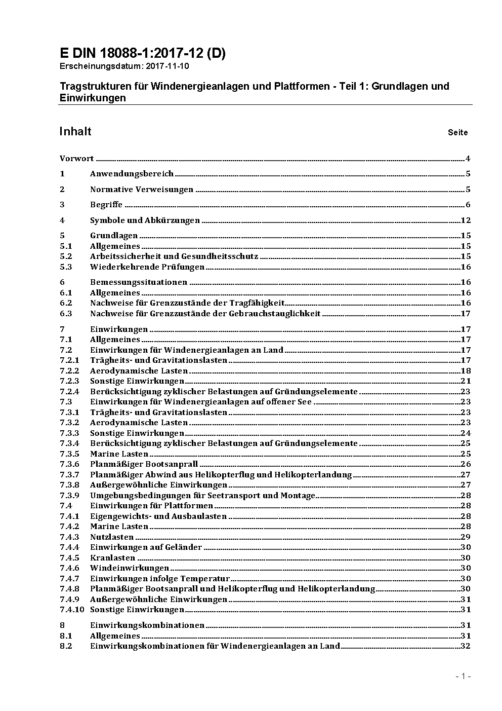 Tragstrukturen für Windenergieanlagen und Plattformen - Teil 1: Grundlagen und Einwirkungen