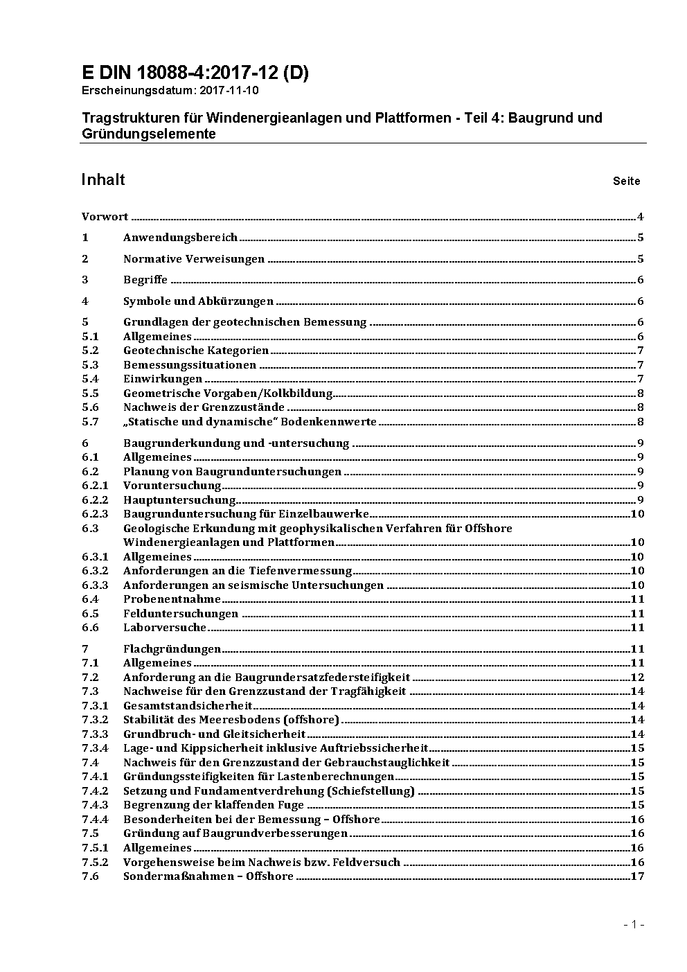 Tragstrukturen für Windenergieanlagen und Plattformen - Teil 4: Baugrund und Gründungselemente