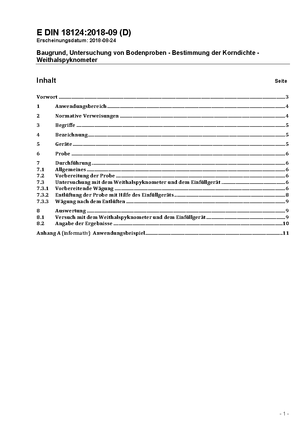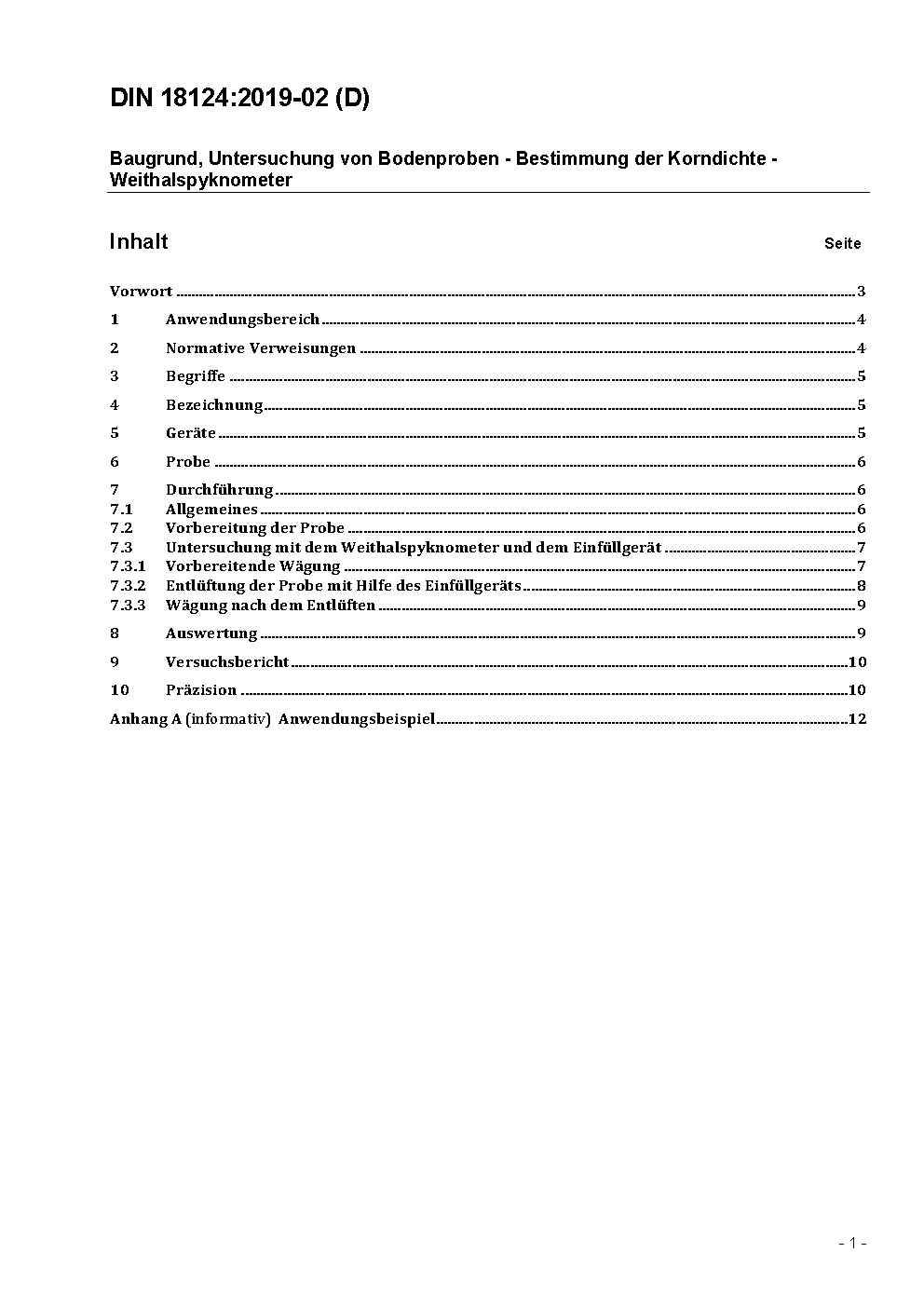 Baugrund, Untersuchung von Bodenproben - Bestimmung der Korndichte - Kapillarpyknometer, Weithalspyknometer, Gaspyknometer