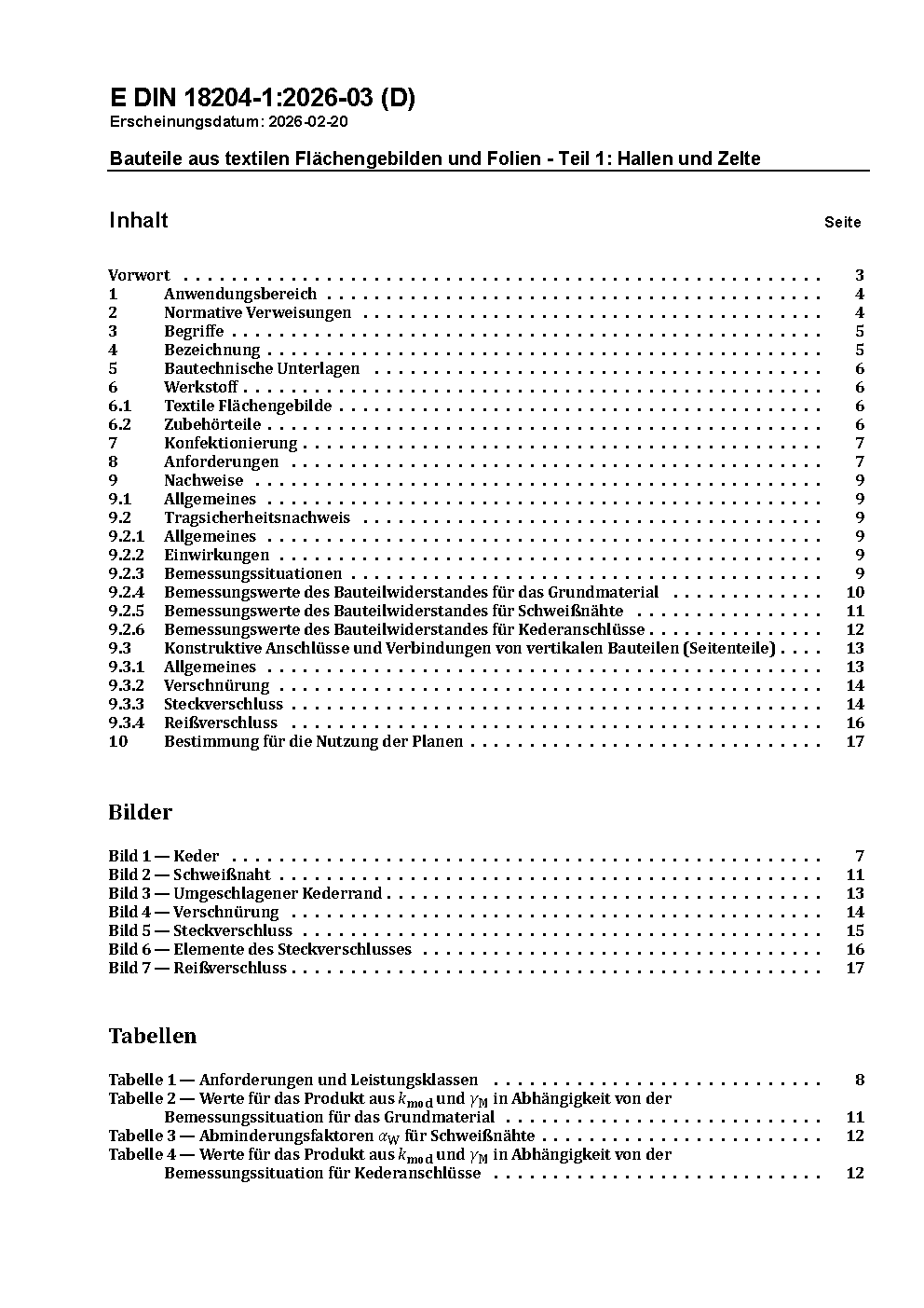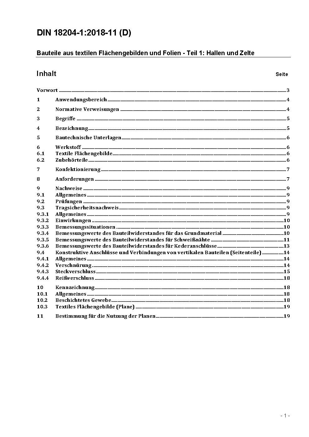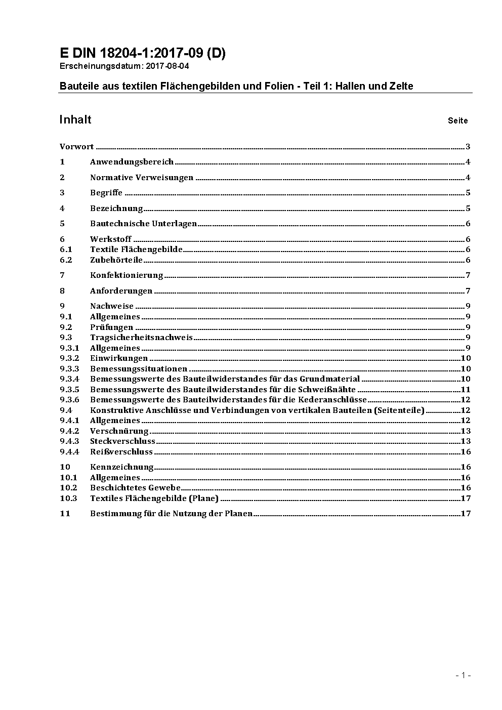 Bauteile aus textilen Flächengebilden und Folien - Teil 1: Hallen und Zelte