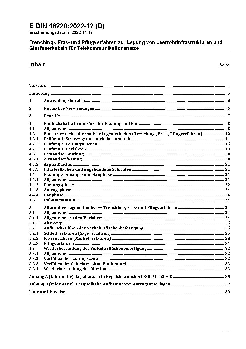 Trenching-, Fräs- und Pflugverfahren zur Legung von Leerrohrinfrastrukturen und Glasfaserkabeln für Telekommunikationsnetze / Achtung: CD-ROM
