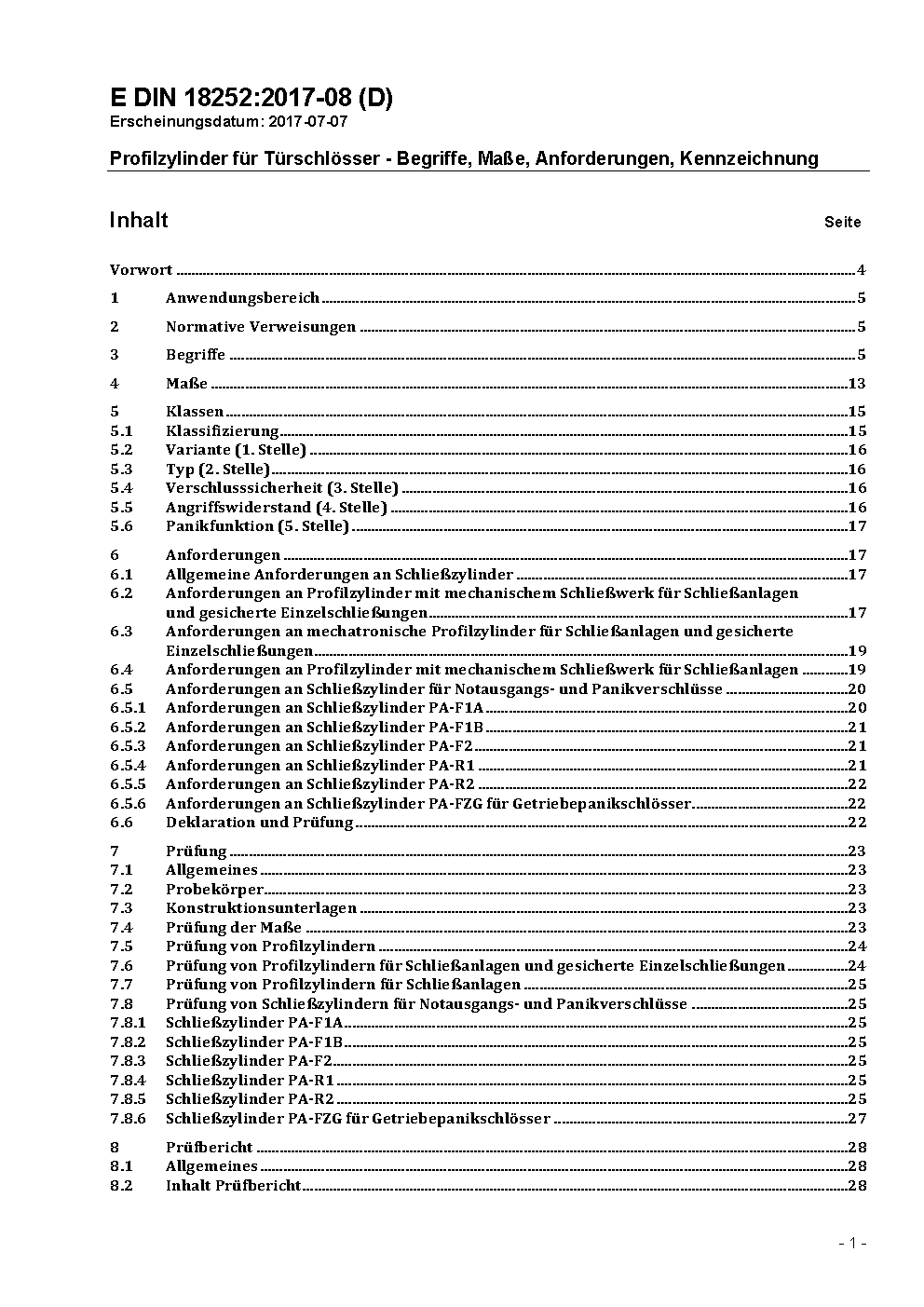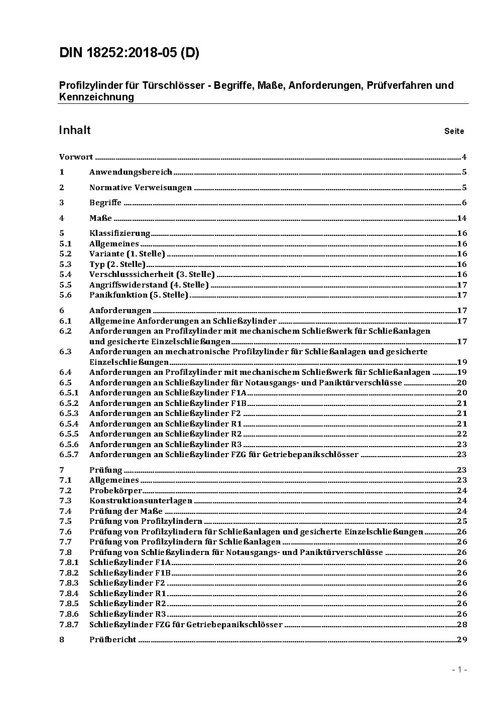 Profile cylinders for door locks - Terminology, dimensions, requirements and marking