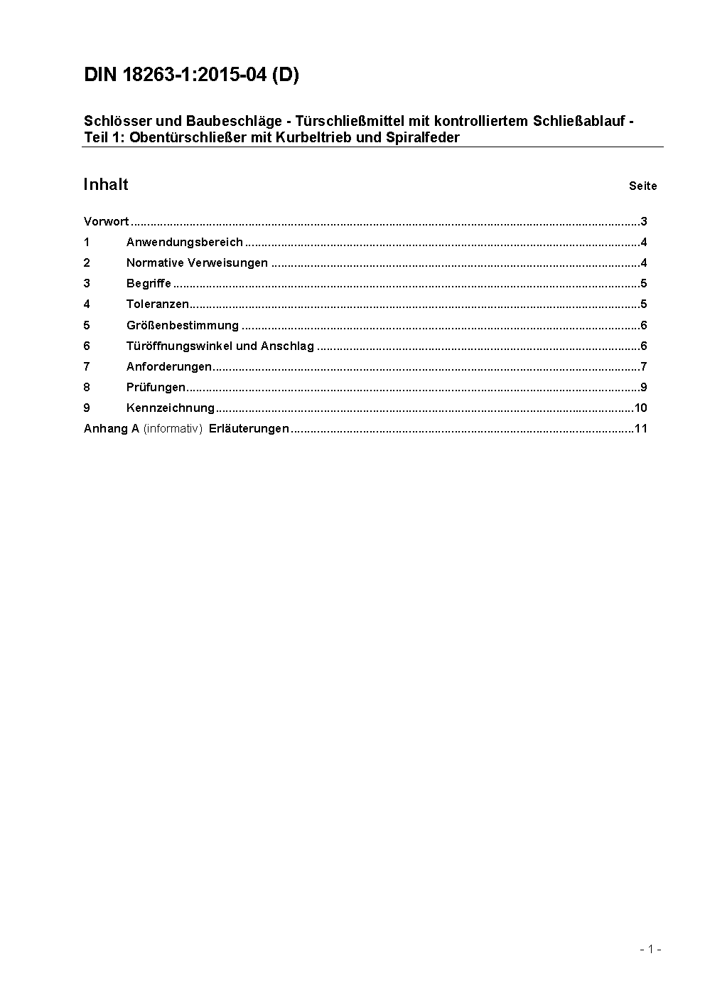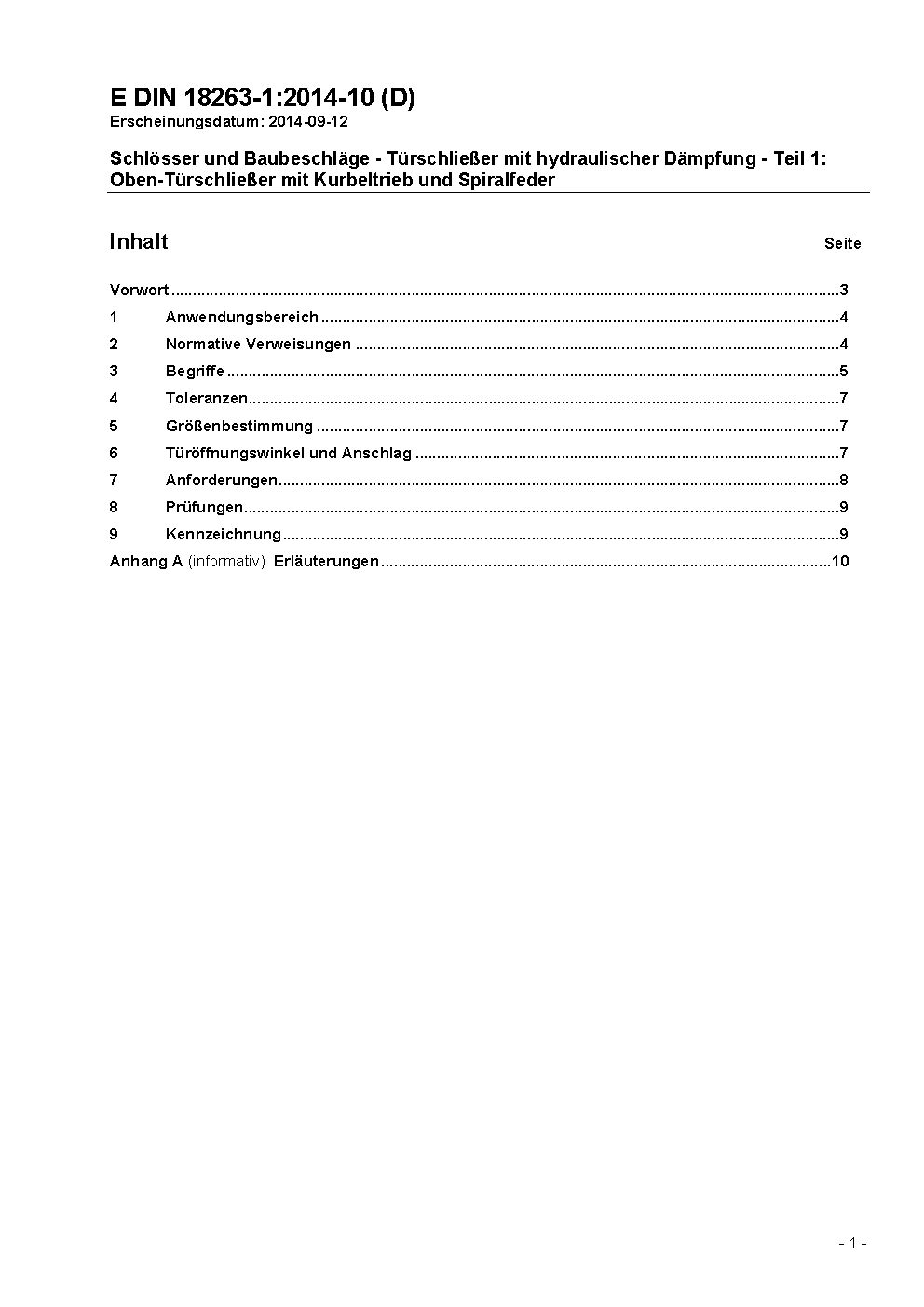 Baubeschläge; Türschließer mit hydraulischer Dämpfung für Feuerschutztüren, Kurbeltrieb-Türschließer, Größenbestimmung, Anforderungen, Prüfungen