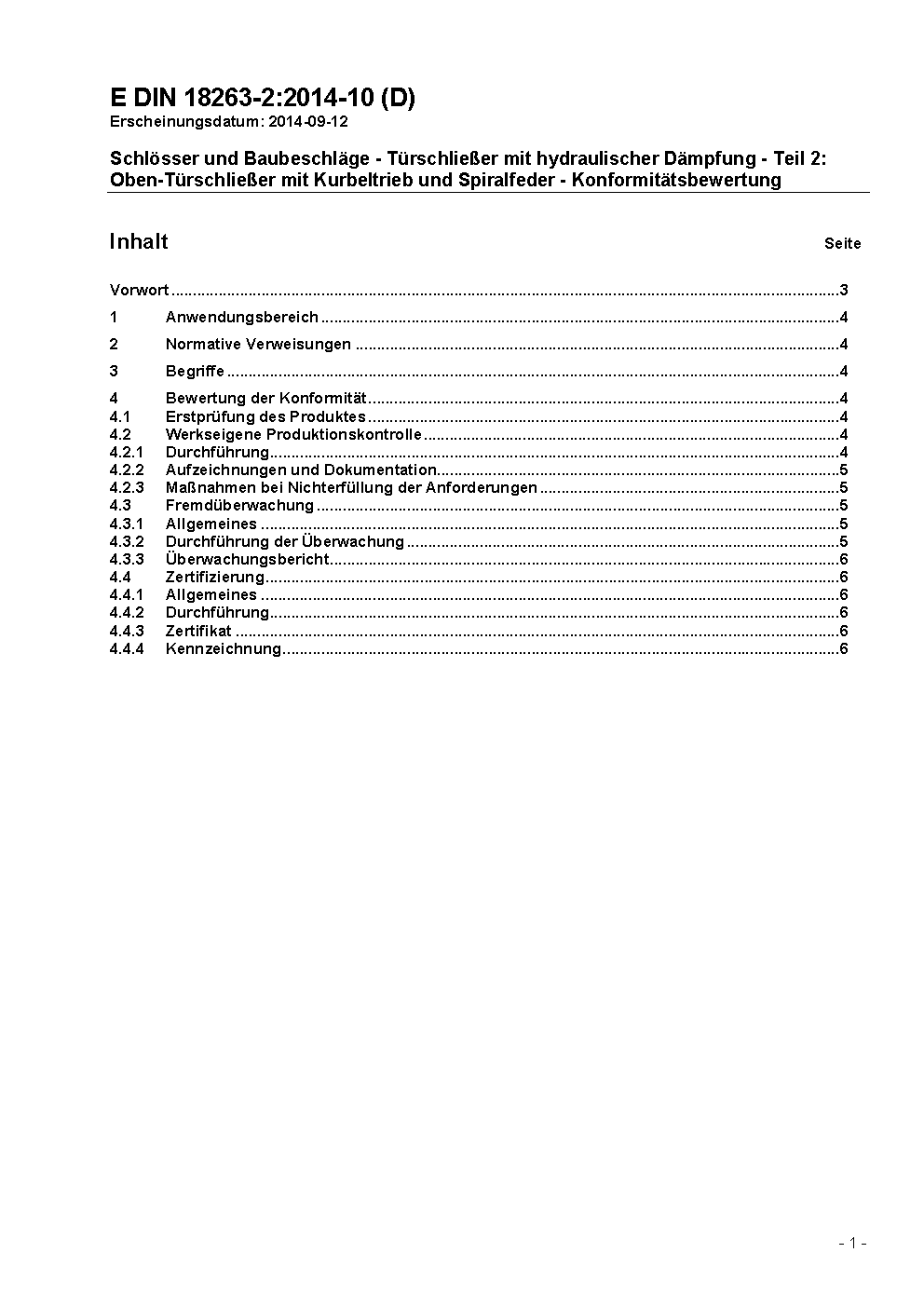 Schlösser und Baubeschläge - Türschließer mit hydraulischer Dämpfung - Teil 2: Oben-Türschließer mit Kurbeltrieb und Spiralfeder - Konformitätsbewertung