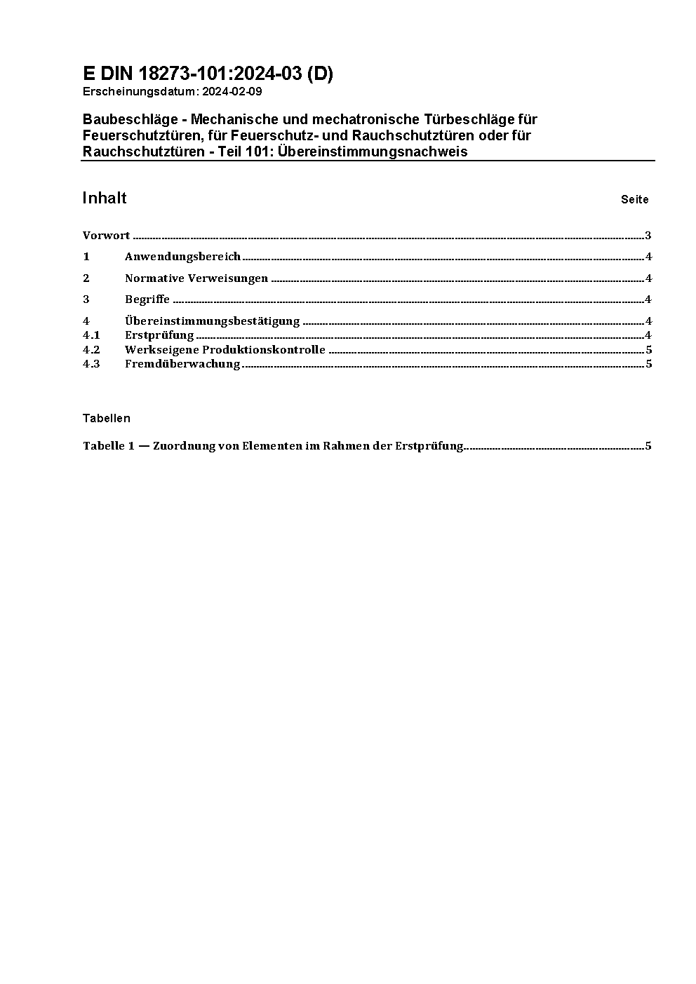 Baubeschläge - Mechanische und mechatronische Türbeschläge für Feuerschutztüren, für Feuerschutz- und Rauchschutztüren oder für Rauchschutztüren - Teil 101: Übereinstimmungsnachweis