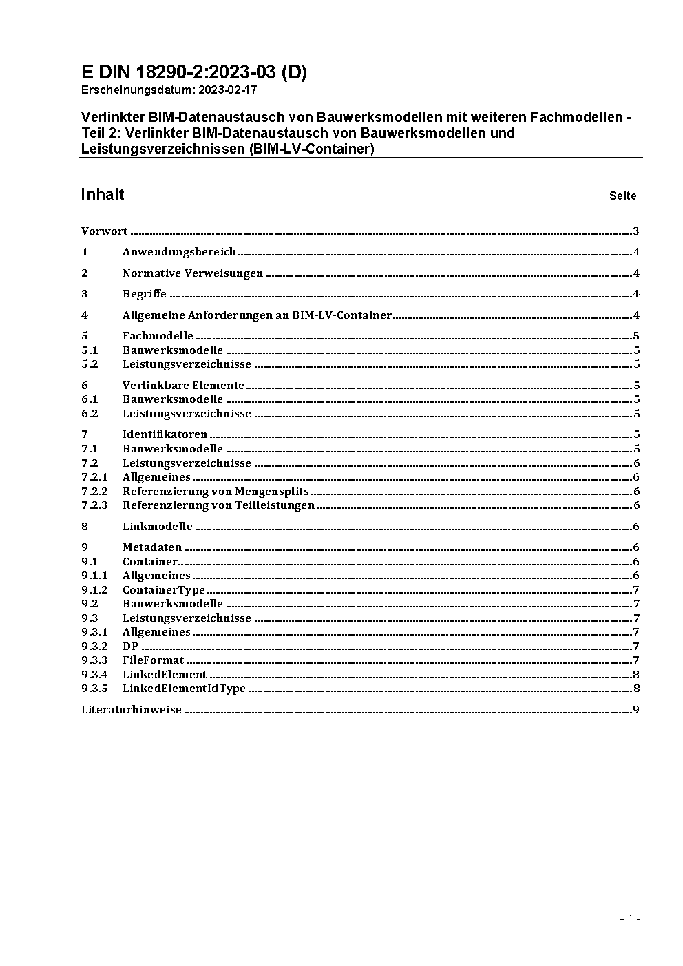Verlinkter BIM-Datenaustausch von Bauwerksinformationsmodellen mit weiteren Fachmodellen - Teil 2: Verlinkter BIM-Datenaustausch von Bauwerksinformationsmodellen und Leistungsverzeichnissen (BIM-LV-Container)