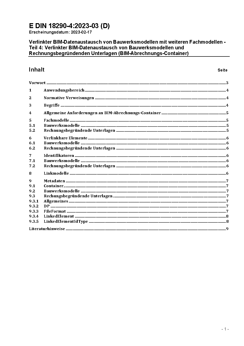 Verlinkter BIM-Datenaustausch von Bauwerksinformationsmodellen mit weiteren Fachmodellen - Teil 4: Verlinkter BIM-Datenaustausch von Bauwerksinformationsmodellen und rechnungsbegründenden Unterlagen (BIM-Abrechnungs-Container)