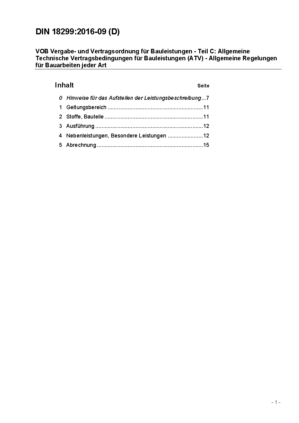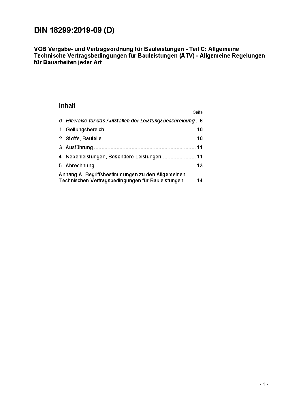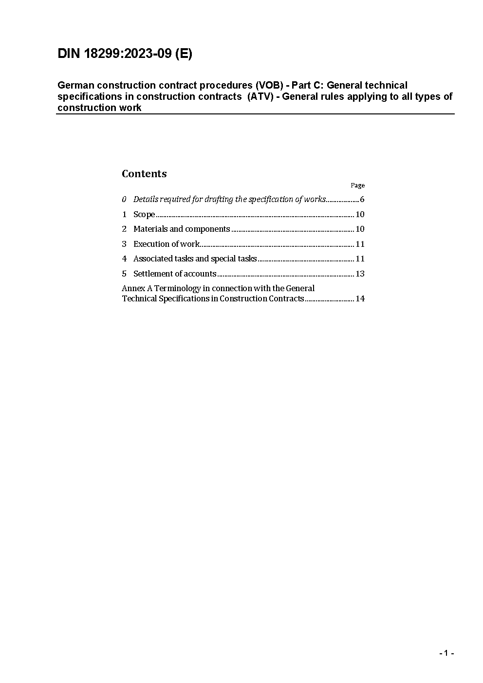 German construction contract procedures (VOB) - Part C: General technical specifications in construction contracts (ATV) - General rules applying to all types of construction work