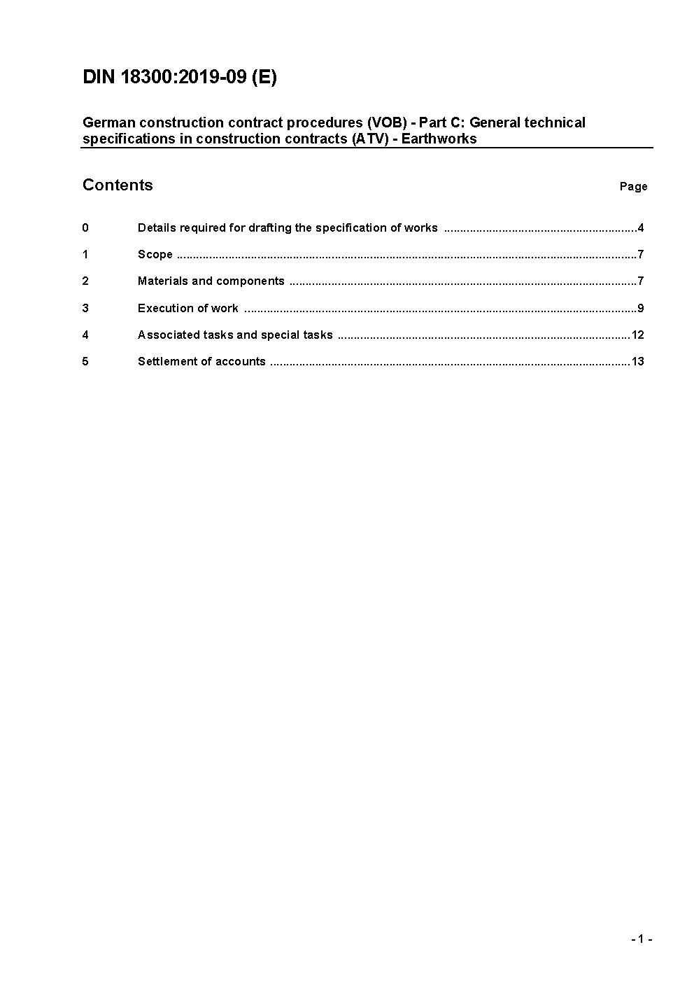 German construction contract procedures (VOB) - Part C: General technical specifications in construction contracts (ATV) - Earthworks