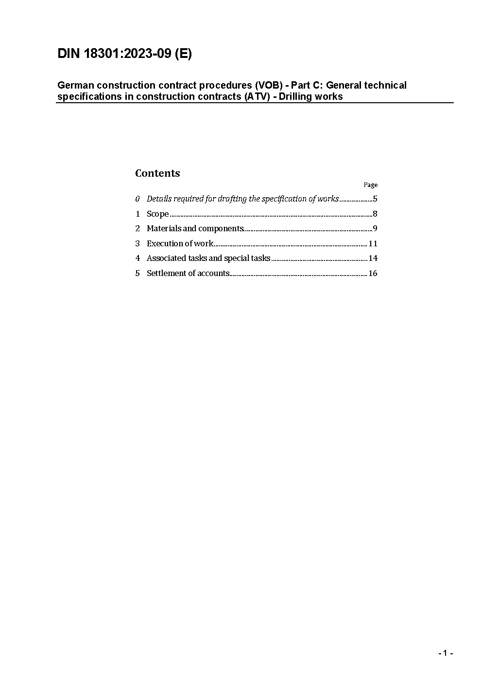 German construction contract procedures (VOB) - Part C: General technical specifications in construction contracts (ATV) - Drilling works