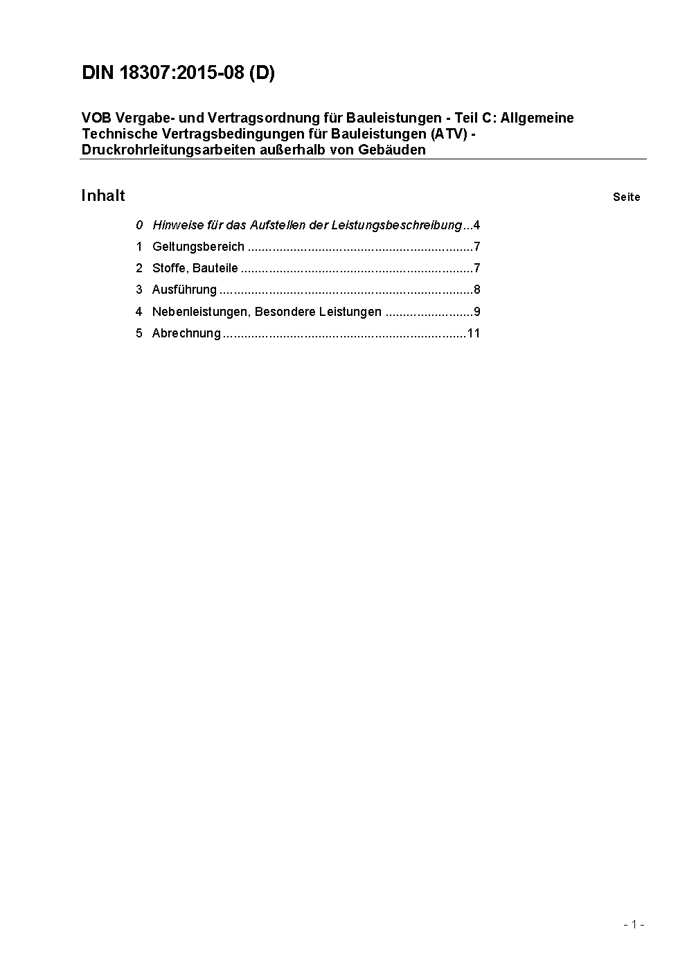 VOB Vergabe- und Vertragsordnung für Bauleistungen - Teil C: Allgemeine Technische Vertragsbedingungen für Bauleistungen (ATV) - Druckrohrleitungsarbeiten außerhalb von Gebäuden