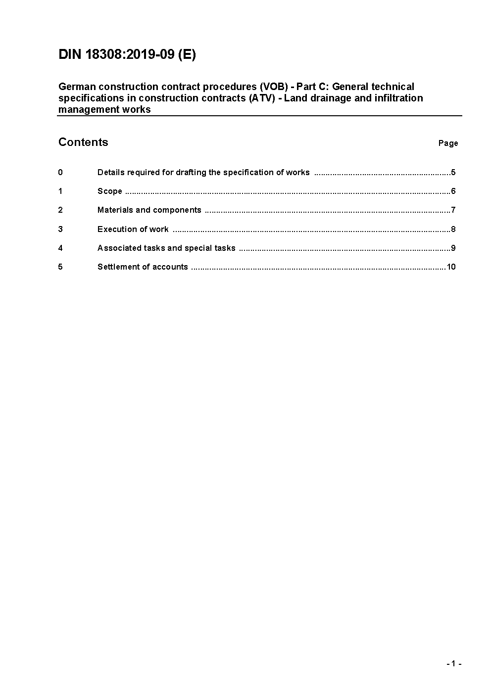 German construction contract procedures (VOB) - Part C: General technical specifications in construction contracts (ATV) - Land drainage and infiltration management works