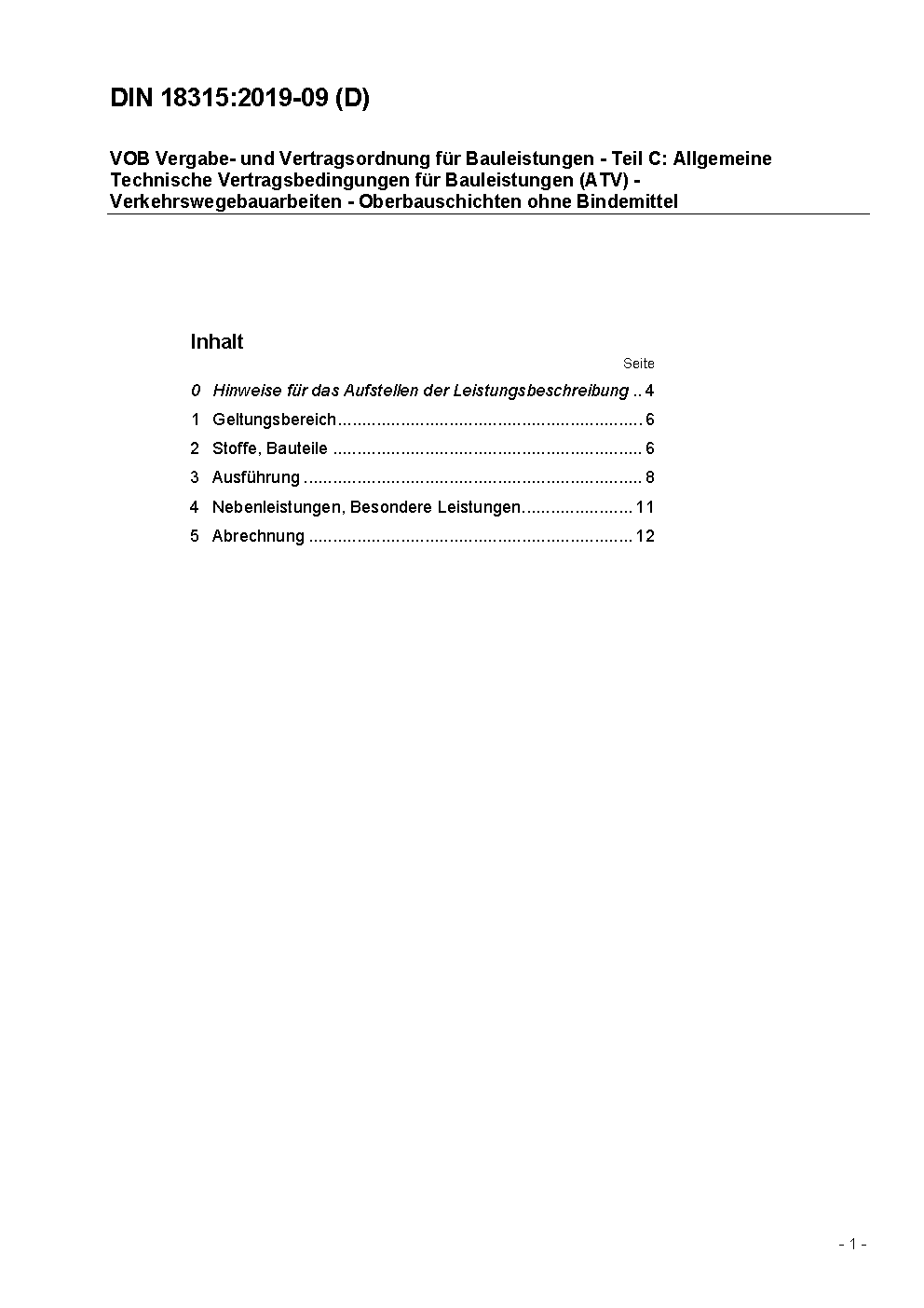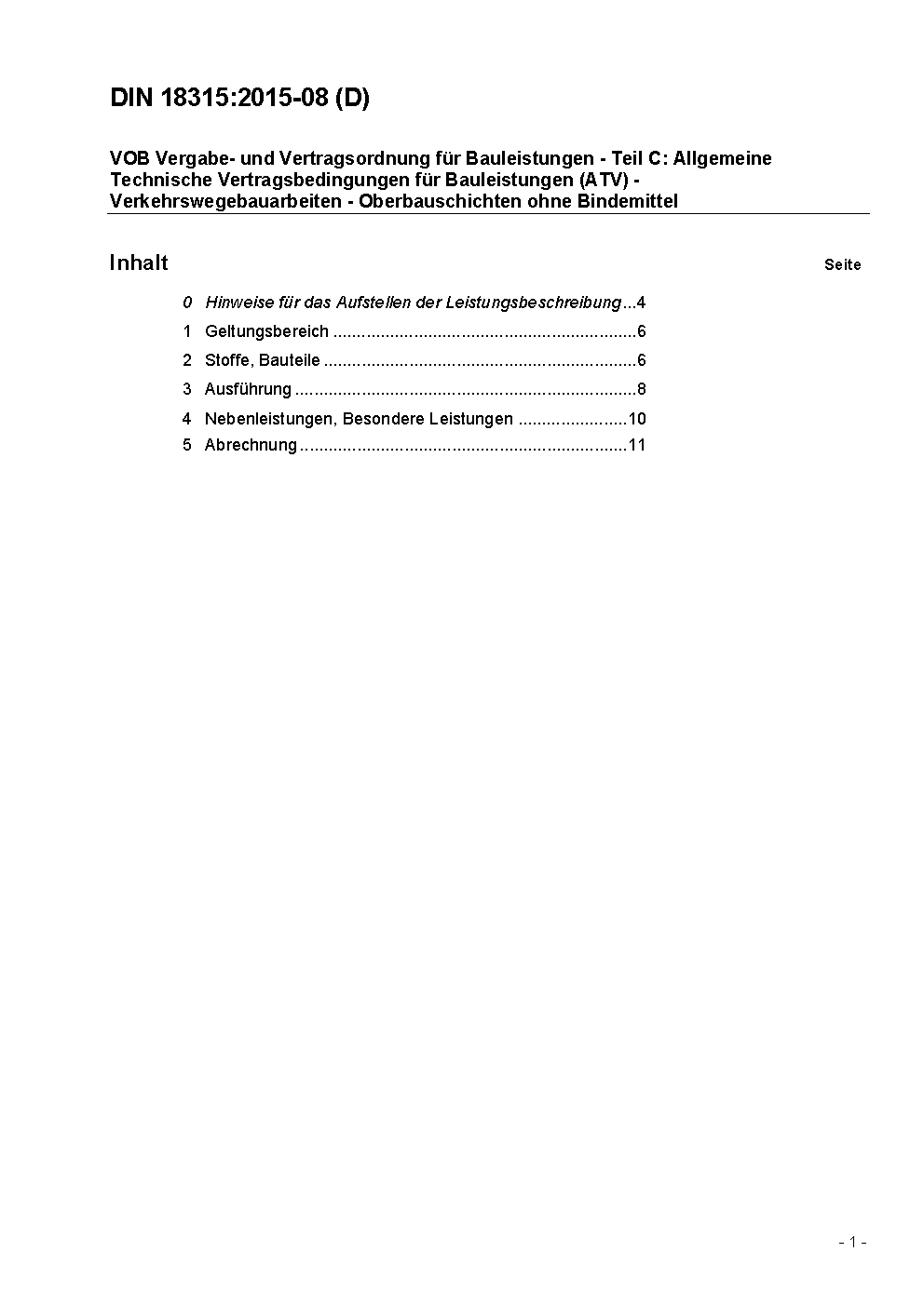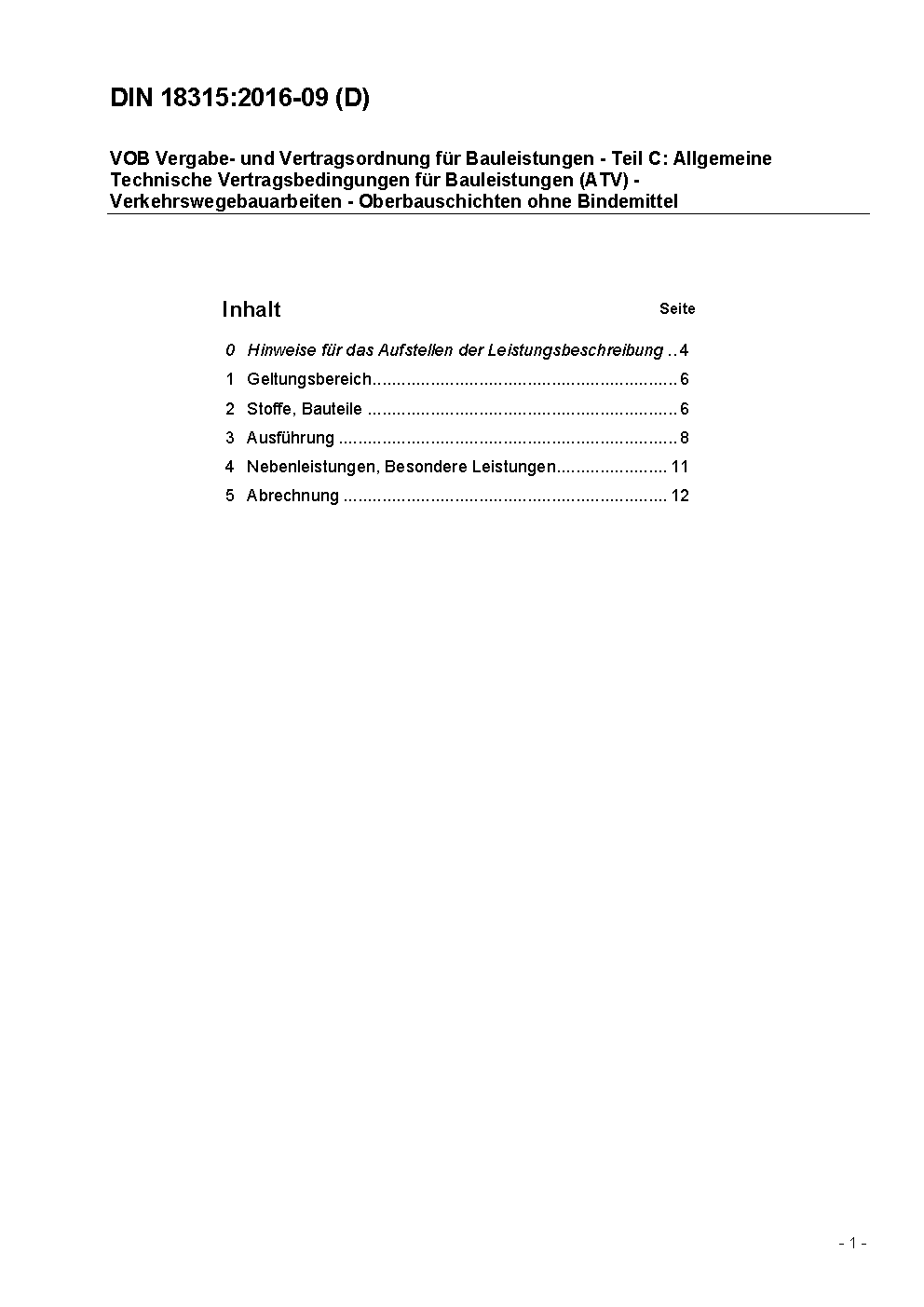 VOB Vergabe- und Vertragsordnung für Bauleistungen - Teil C: Allgemeine Technische Vertragsbedingungen für Bauleistungen (ATV) - Verkehrswegebauarbeiten - Oberbauschichten ohne Bindemittel