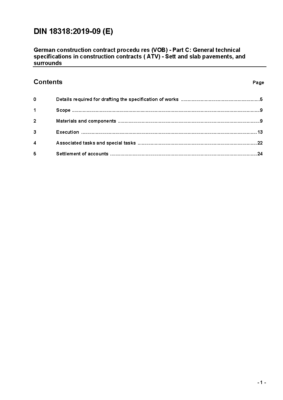 German construction contract procedures (VOB) - Part C: General technical specifications in construction contracts (ATV) - Road construction - Dry jointed sett and slab pavements, and surrounds