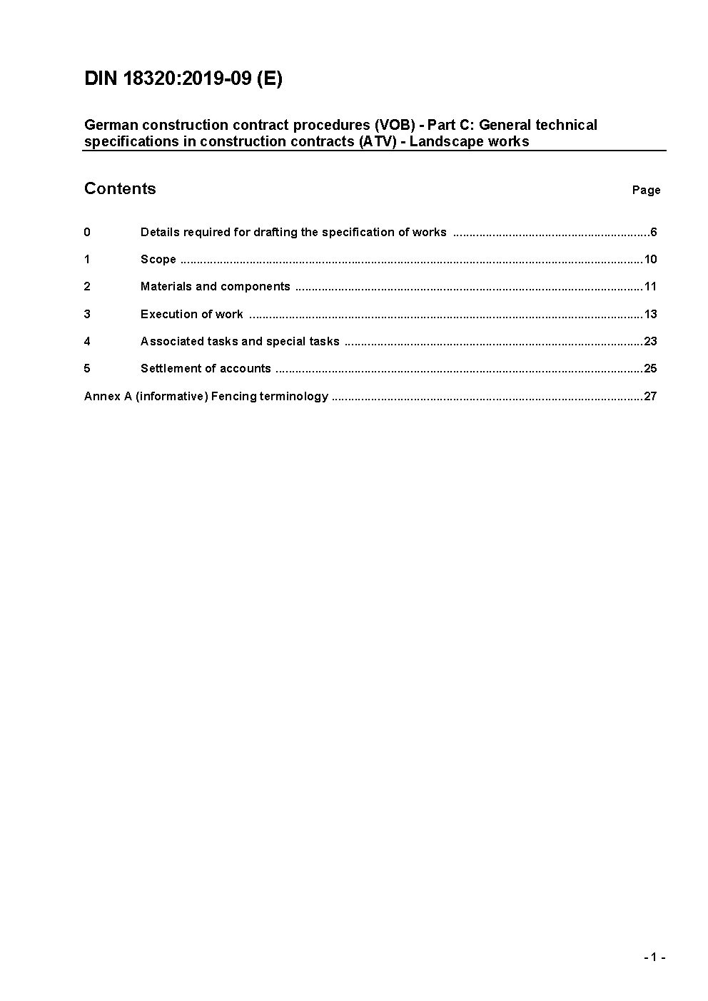 German construction contract procedures (VOB) - Part C: General technical specifications in construction contracts (ATV) - Landscape works