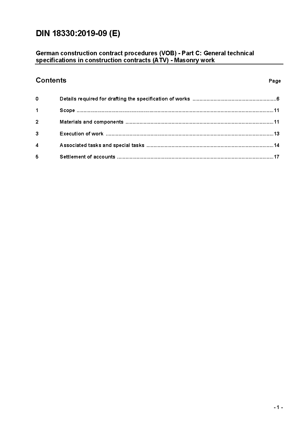 German construction contract procedures (VOB) - Part C: General technical specifications in construction contracts (ATV) - Masonry work