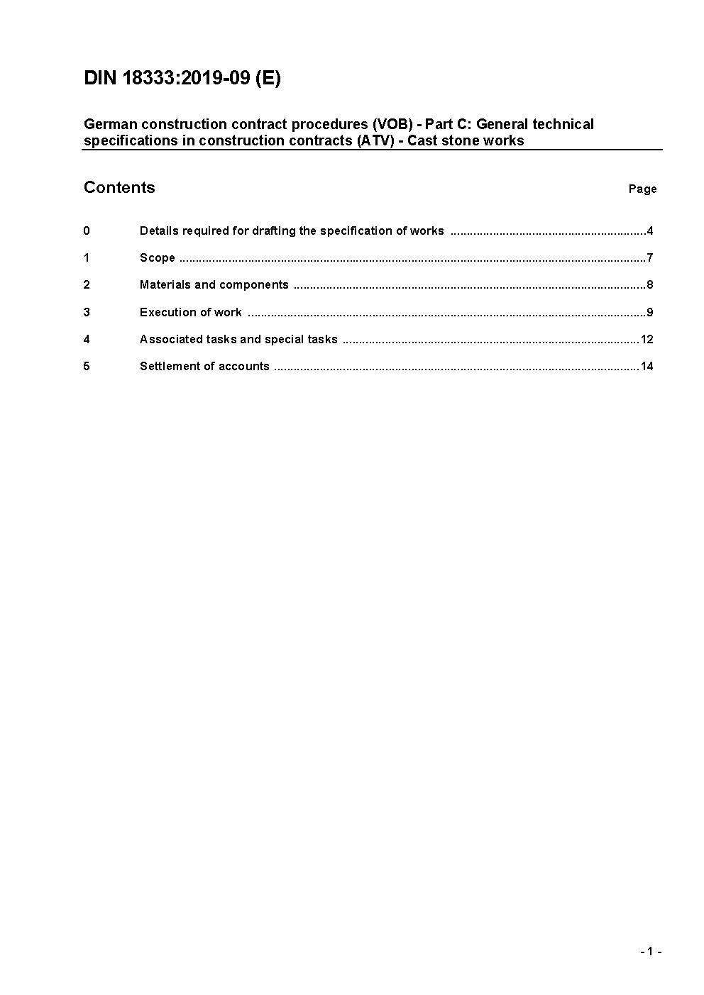 German construction contract procedures (VOB) - Part C: General technical specifications in construction contracts (ATV) - Cast stone works