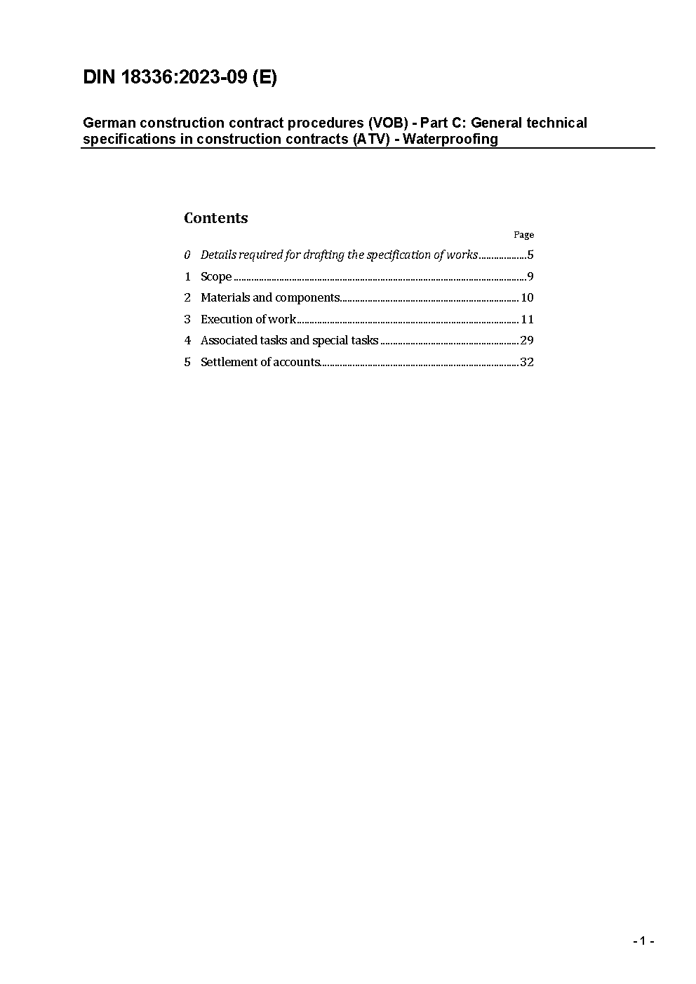 German construction contract procedures (VOB) - Part C: General technical specifications in construction contracts (ATV) - Waterproofing