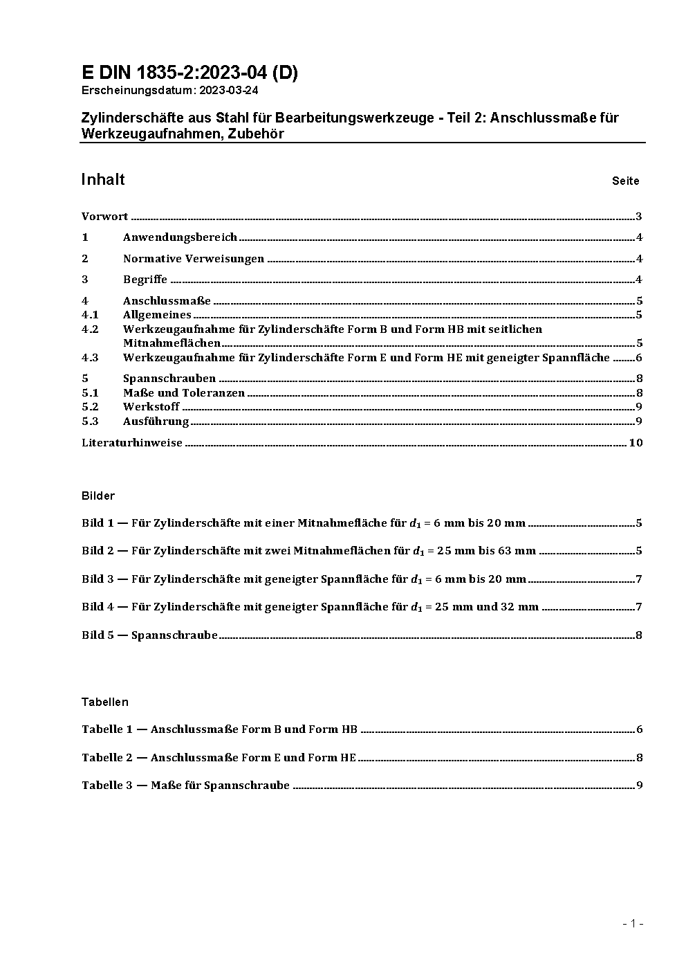Zylinderschäfte für Fräser - Teil 2: Anschlußmaße für Spannfutter, Zubehör
