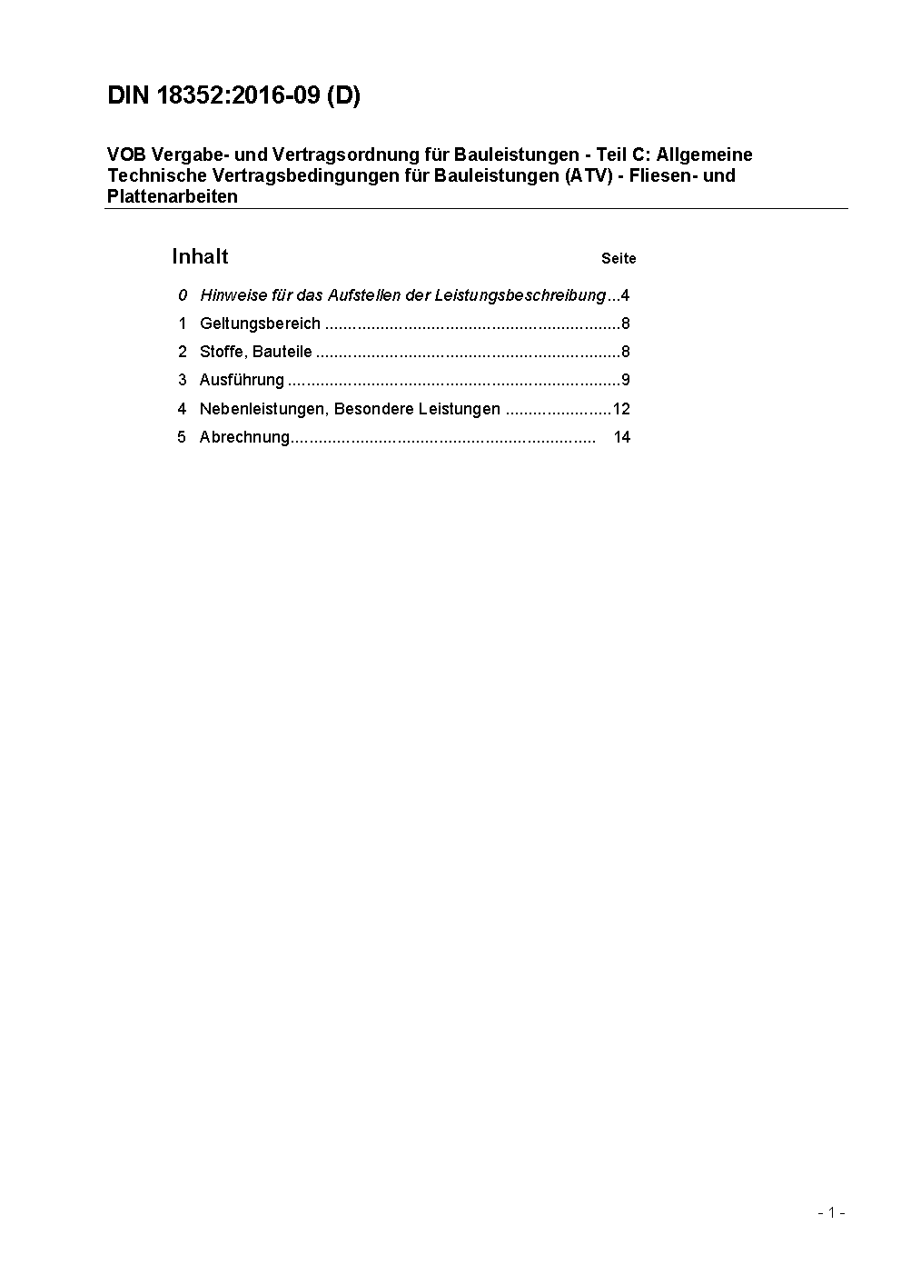 German construction contract procedures (VOB) - Part C: General technical specifications in construction contracts (ATV) - Wall and floor tiling