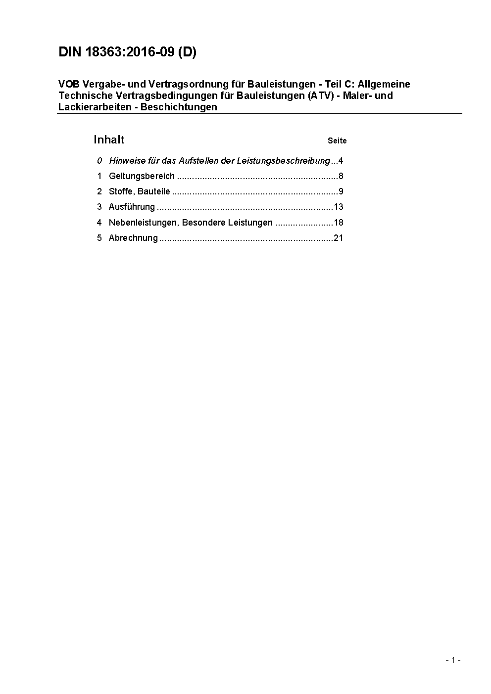 VOB Vergabe- und Vertragsordnung für Bauleistungen - Teil C: Allgemeine Technische Vertragsbedingungen für Bauleistungen (ATV) - Maler- und Lackierarbeiten - Beschichtungen