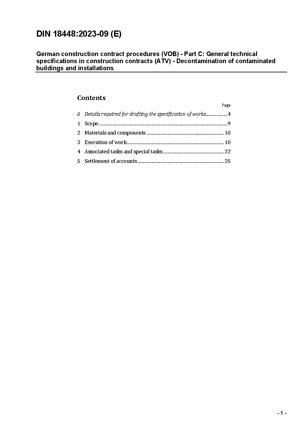 German construction contract procedures (VOB) - Part C: General technical specifications in construction contracts (ATV) - Decontamination of contaminated buildings and installations