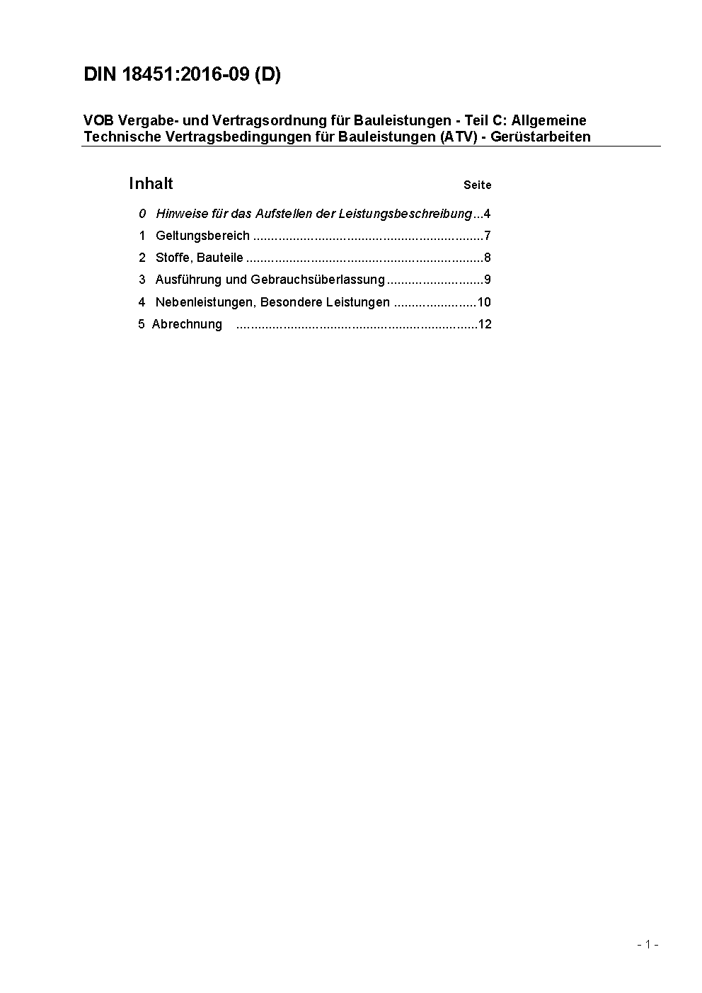 VOB Verdingungsordnung für Bauleistungen - Teil C: Allgemeine Technische Vertragsbedingungen für Bauleistungen (ATV) - Gerüstarbeiten