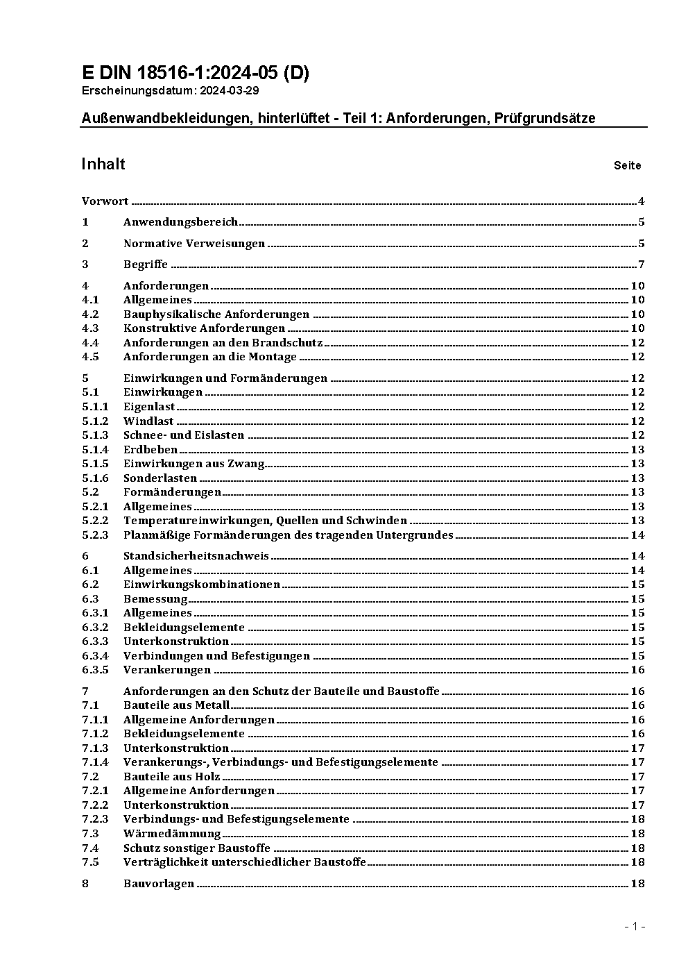 Außenwandbekleidungen, hinterlüftet; Anforderungen, Prüfgrundsätze