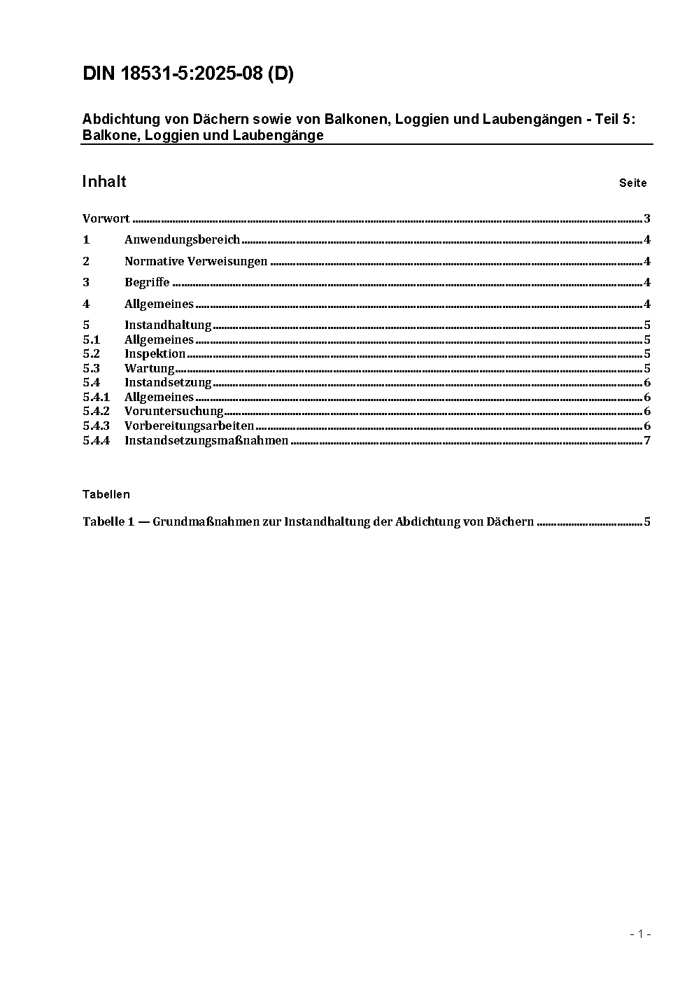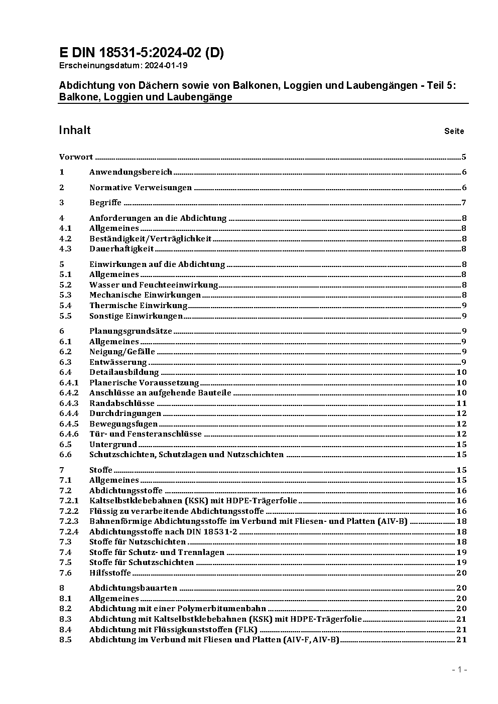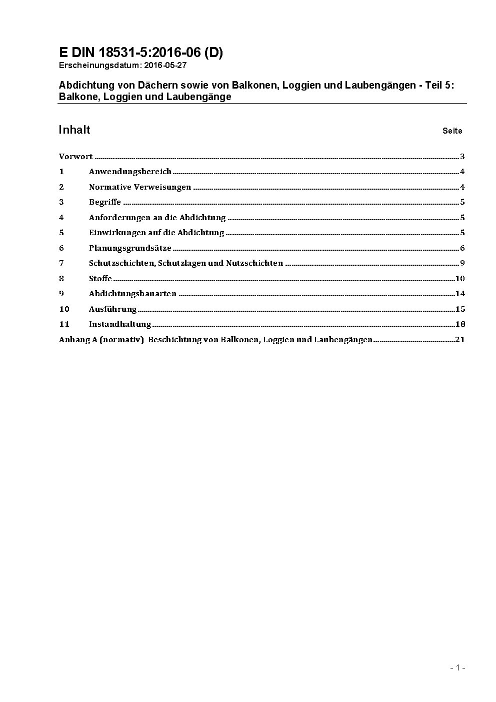 Abdichtung von Dächern sowie von Balkonen, Loggien und Laubengängen - Teil 5: Balkone, Loggien und Laubengänge