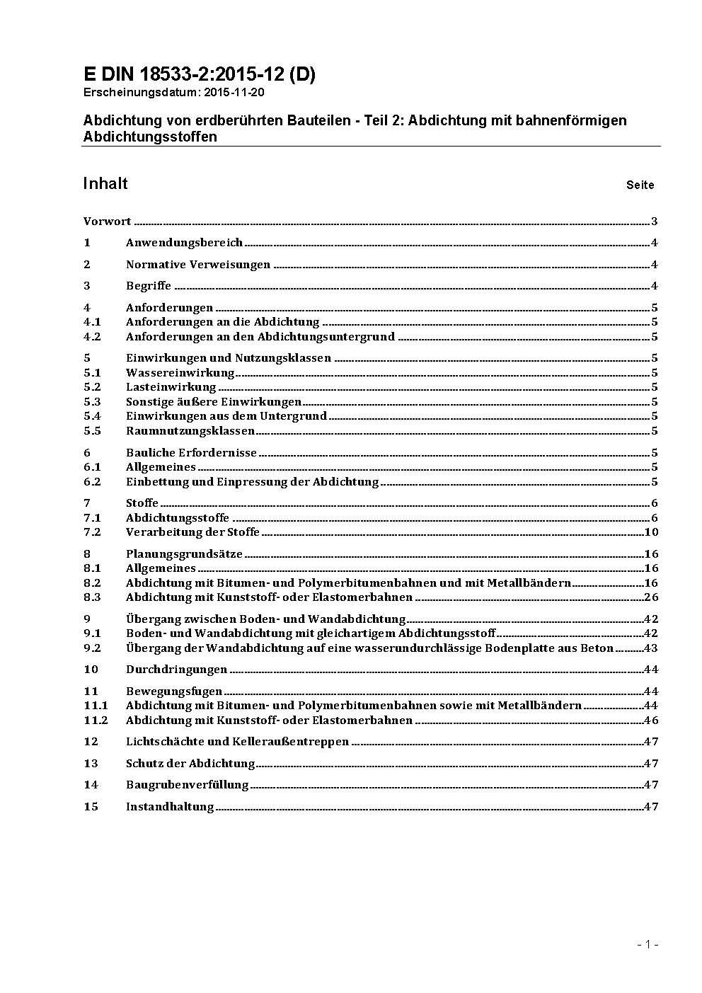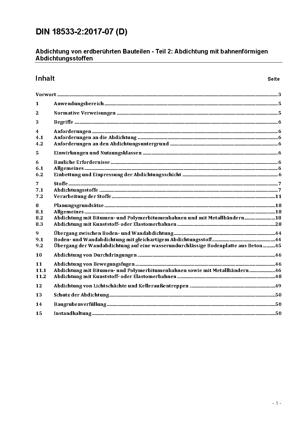 Abdichtung von erdberührten Bauteilen - Teil 2: Abdichtung mit bahnenförmigen Abdichtungsstoffen / Achtung: Gilt in Verbindung mit DIN 18533-1 (2017-07)