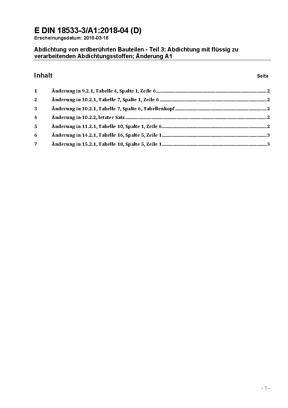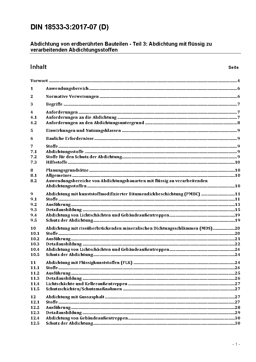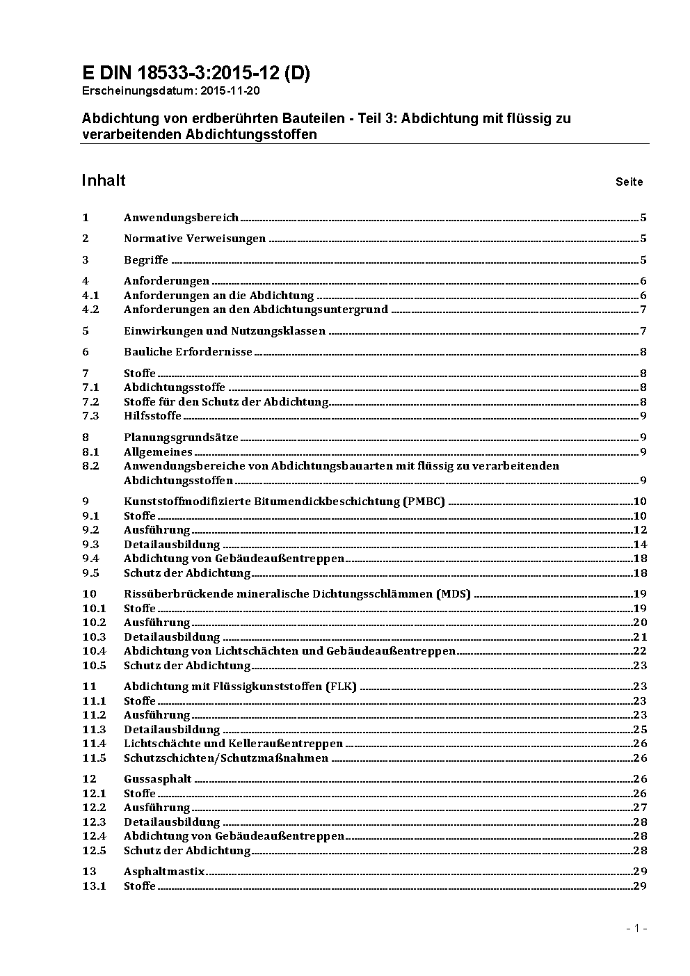 Abdichtung von erdberührten Bauteilen - Teil 3: Abdichtung mit flüssig zu verarbeitenden Abdichtungsstoffen / Achtung: Gilt in Verbindung mit DIN 18533-1 (2015-12)