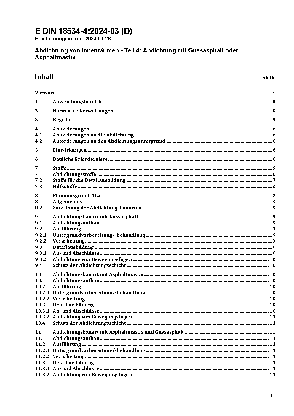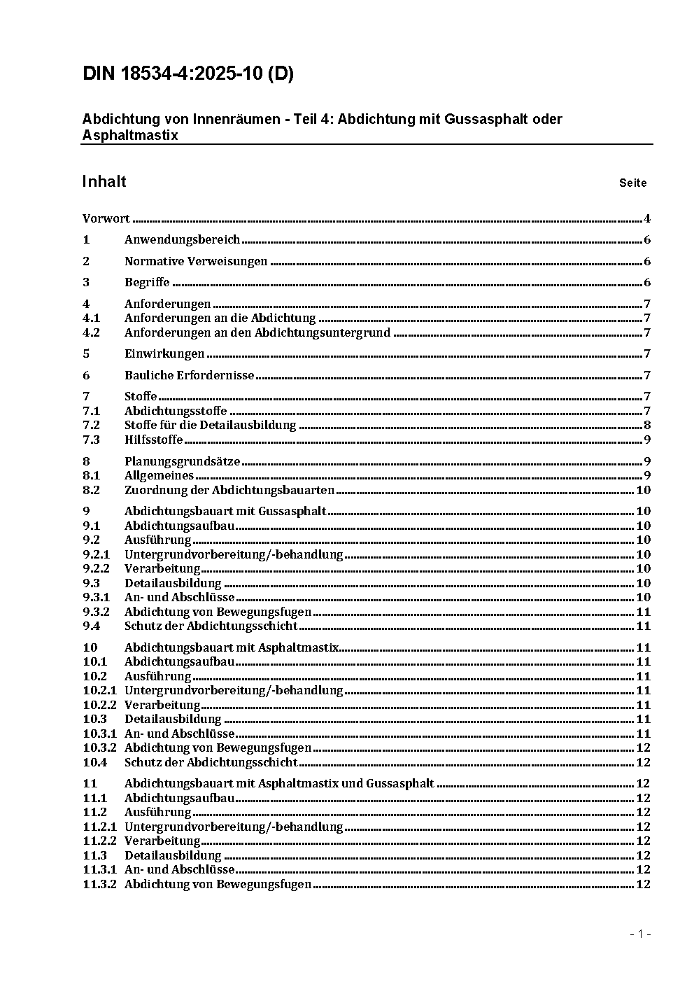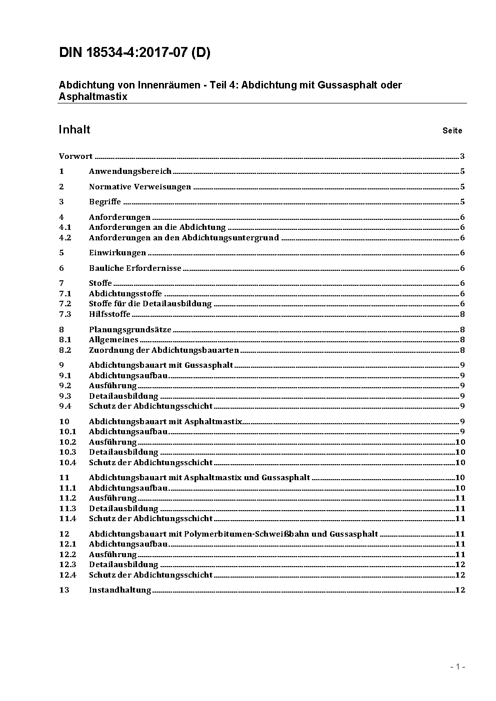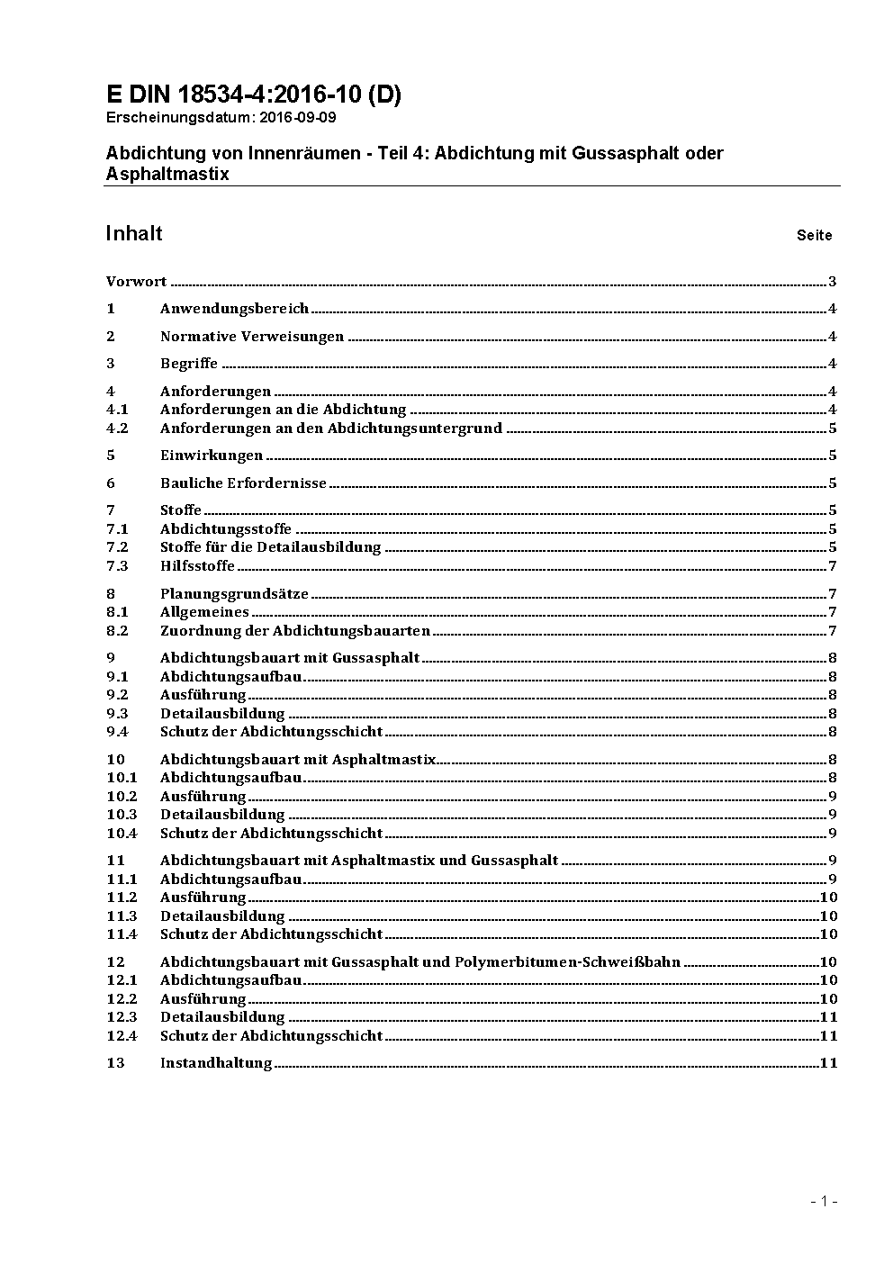 Abdichtung von Innenräumen - Teil 4: Abdichtung mit Gussasphalt oder Asphaltmastix
