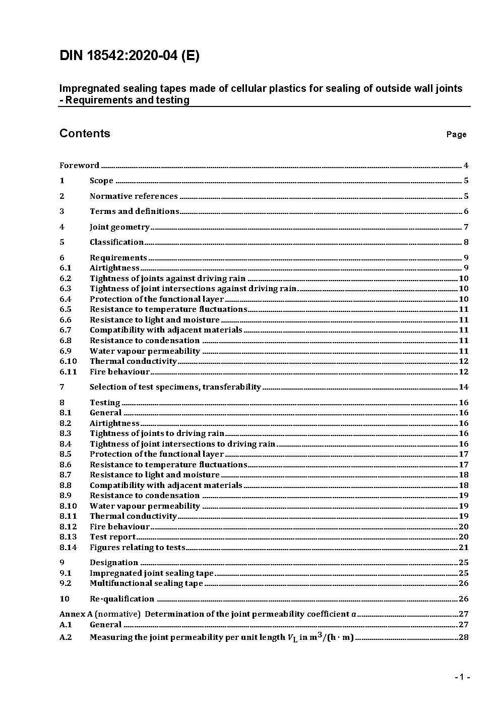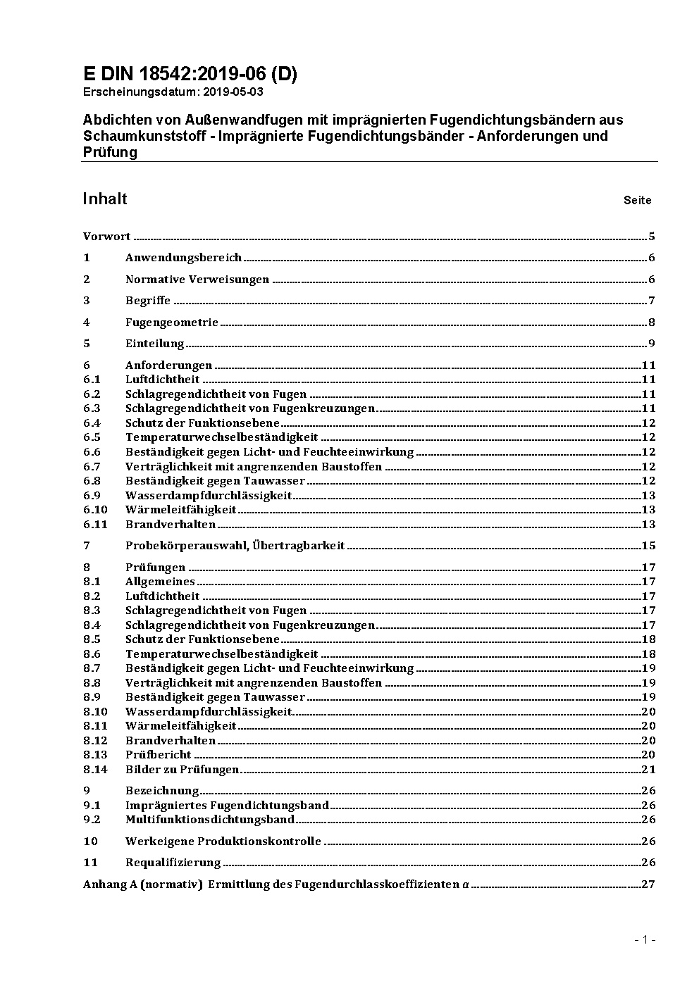 Abdichten von Außenwandfugen mit imprägnierten Fugendichtungsbändern aus Schaumkunststoff - Imprägnierte Fugendichtungsbänder - Anforderungen und Prüfung