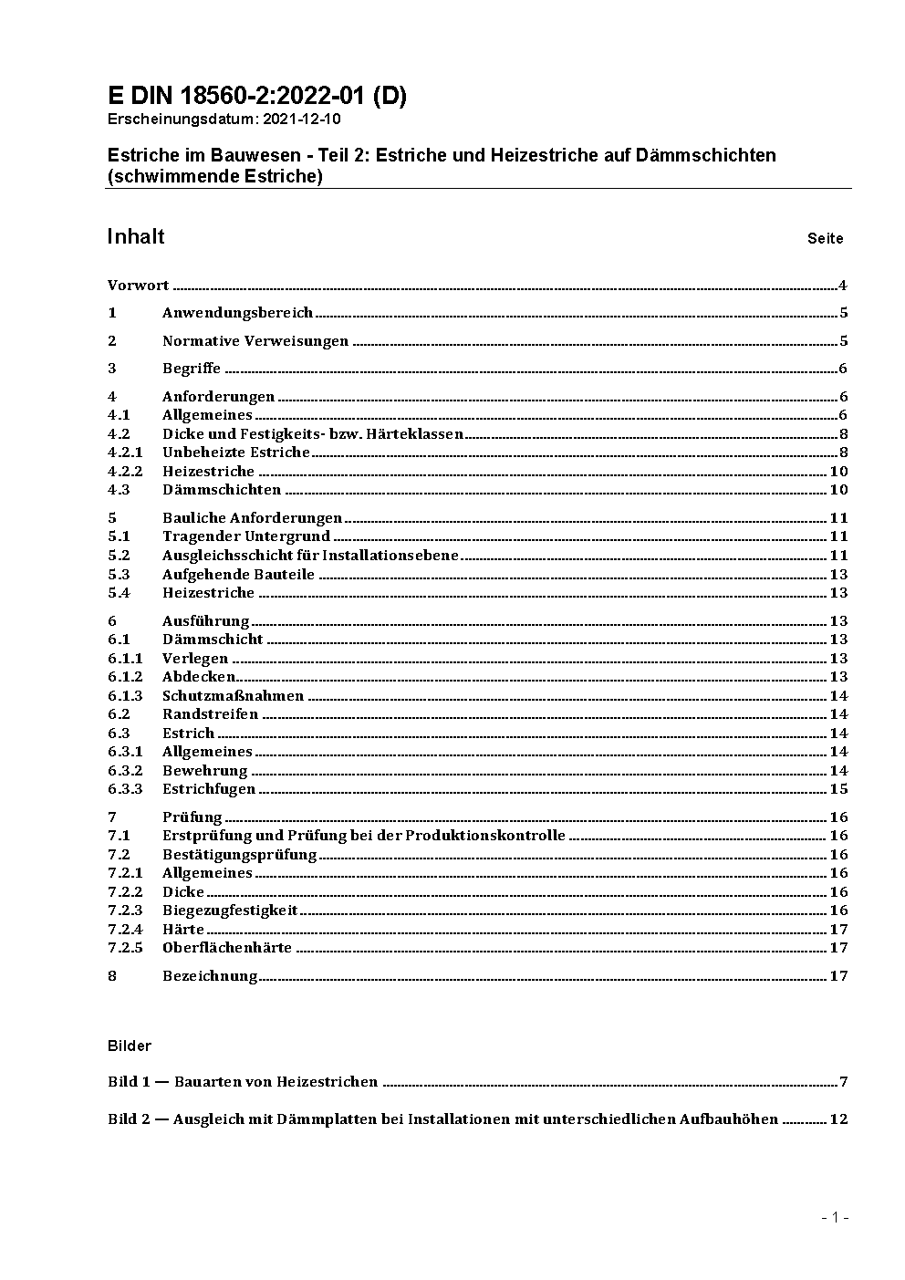 Screeds in building; Screeds on insulating layers (Floating screeds)