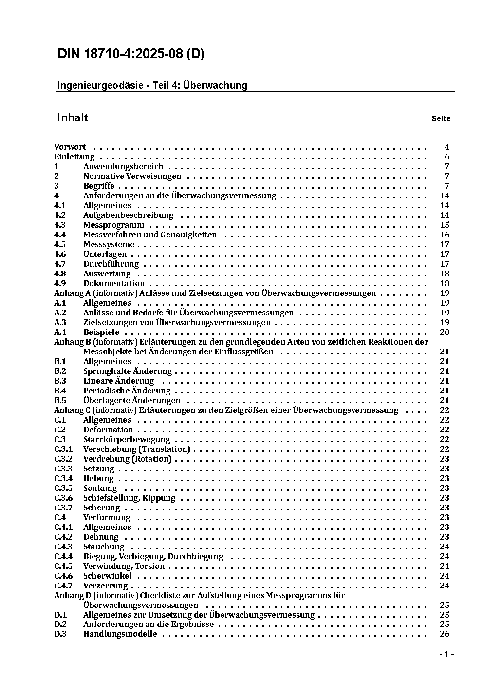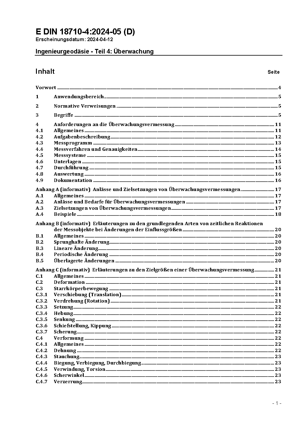 Ingenieurvermessung - Teil 4: Überwachung / Achtung: Gilt in Verbindung mit DIN 18710-1 (2010-09)