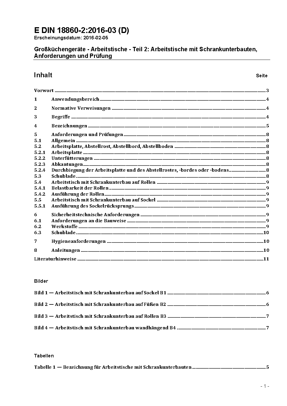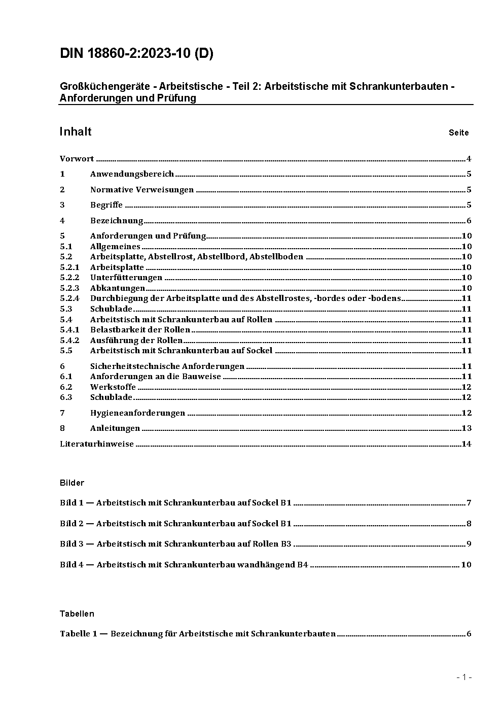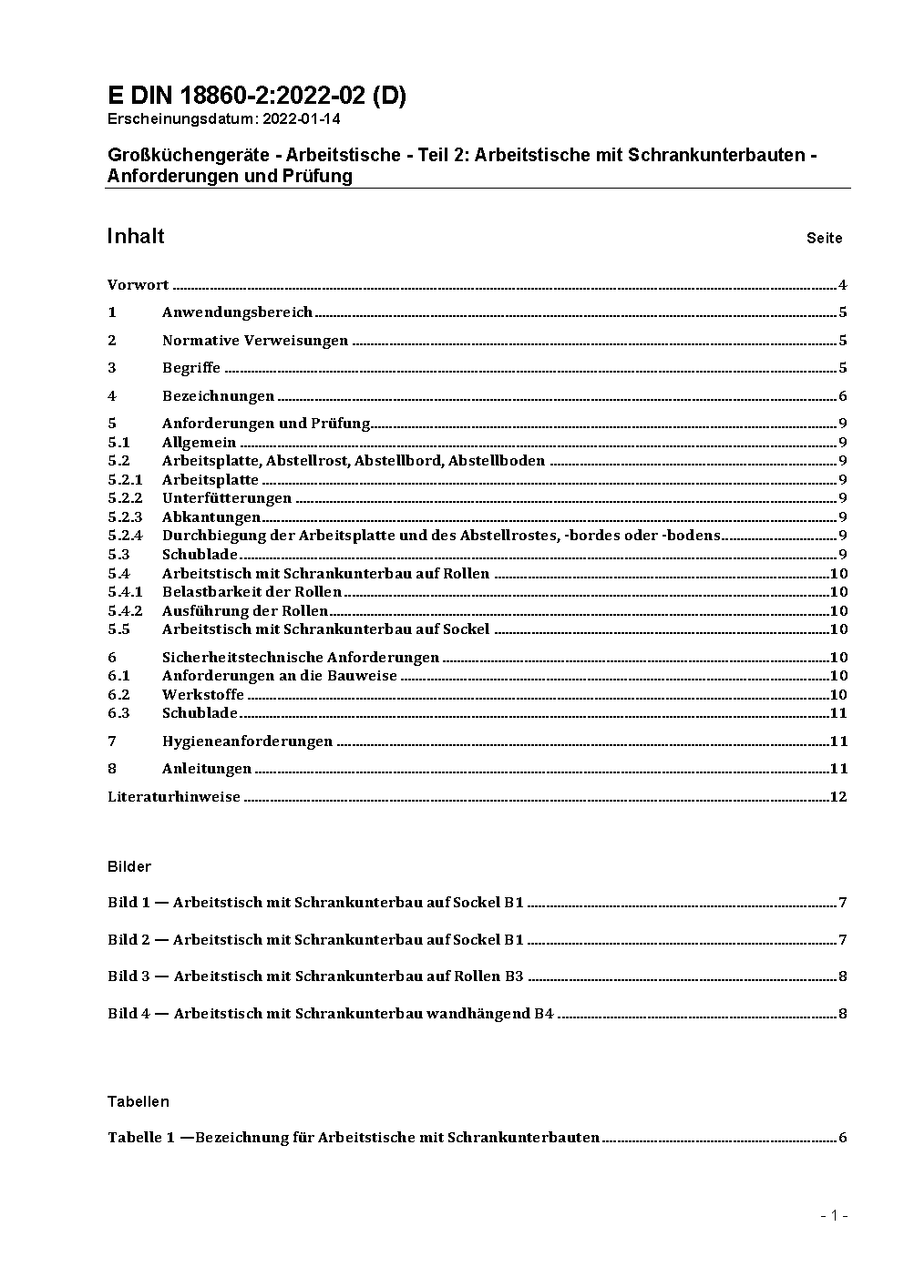 Großküchengeräte - Arbeitstische - Teil 2: Arbeitstische mit Schrankunterbauten - Anforderungen und Prüfung / Achtung: Daneben gilt DIN 18860-2 (2018-10) noch bis 2024-03-31.