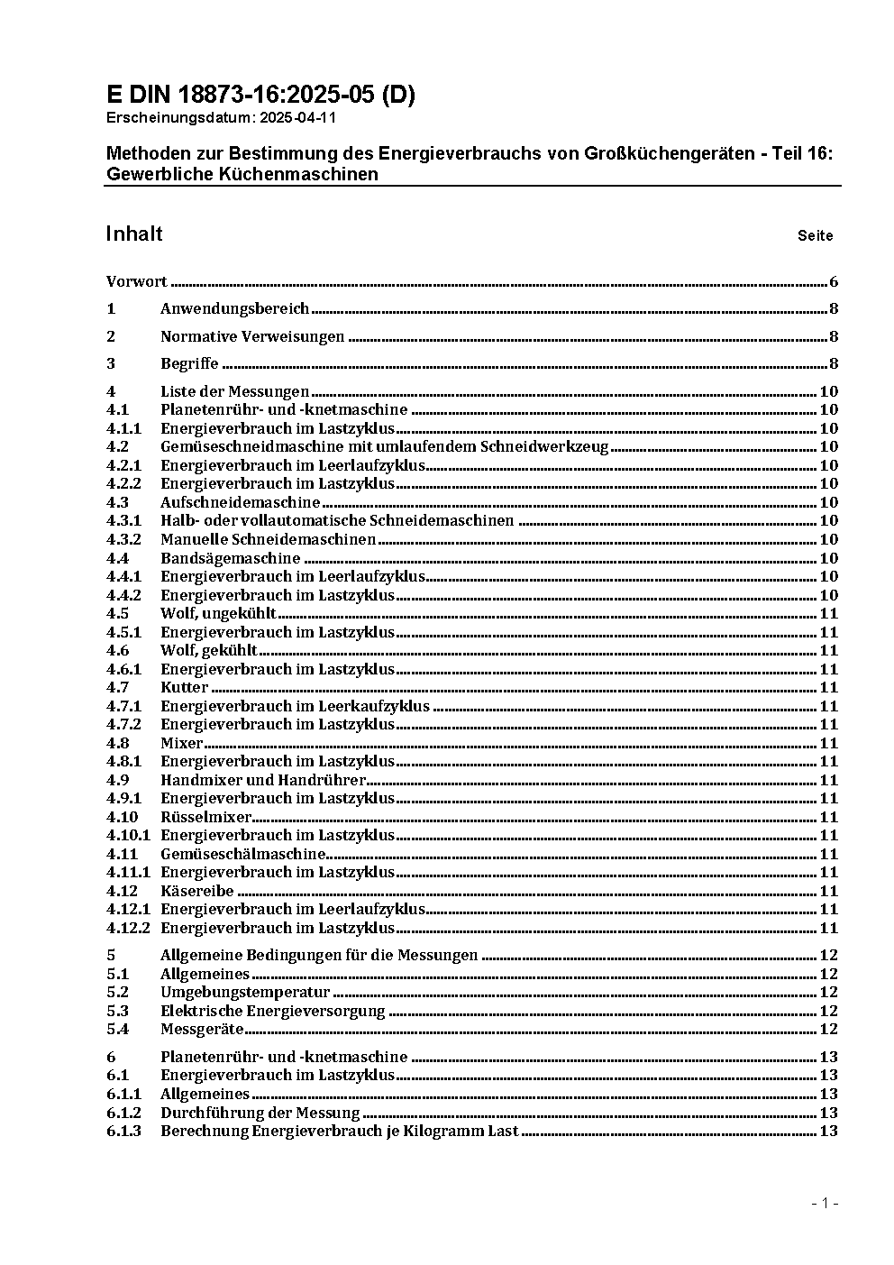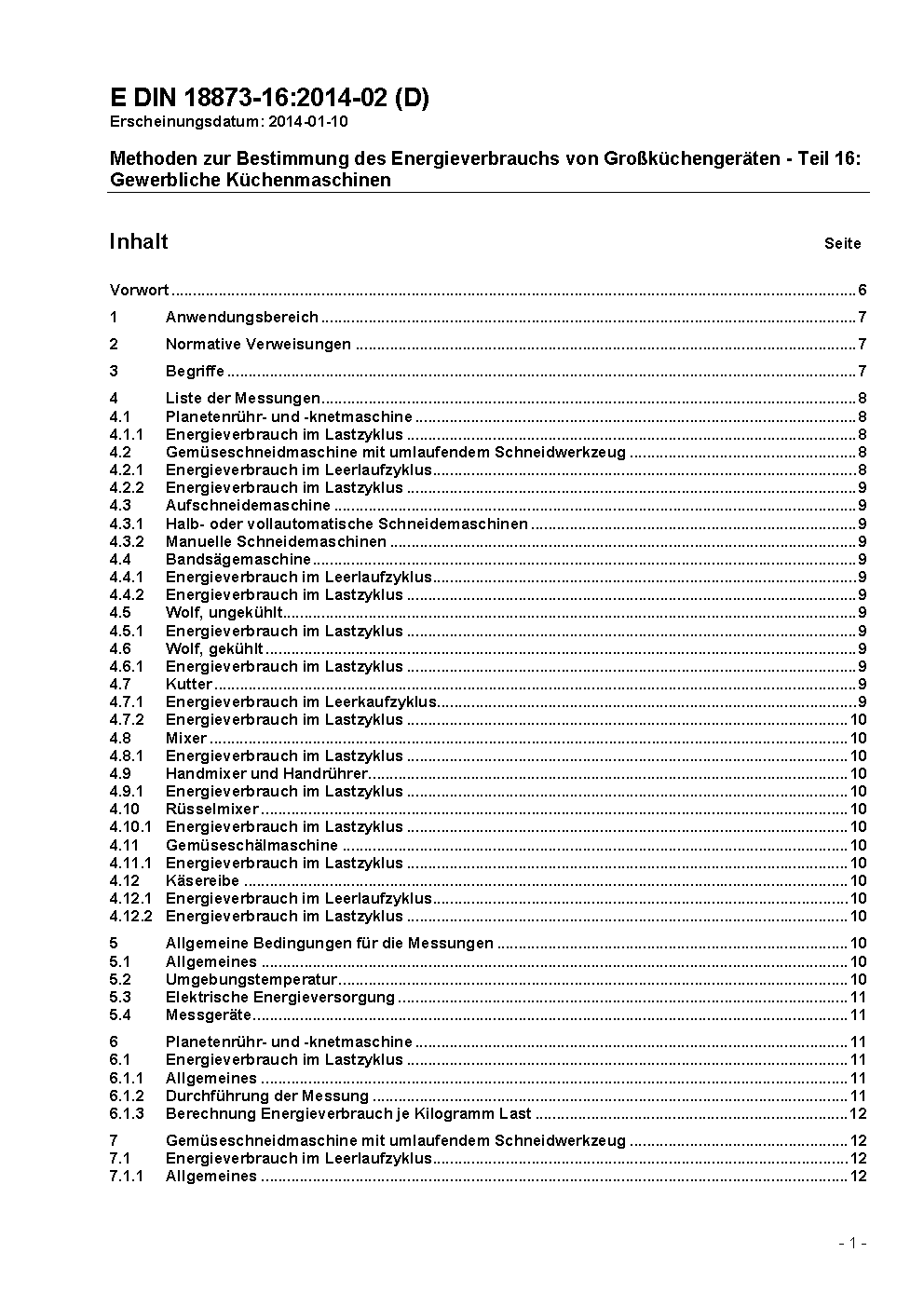 Methoden zur Bestimmung des Energieverbrauchs von Großküchengeräten - Teil 16: Gewerbliche Küchenmaschinen