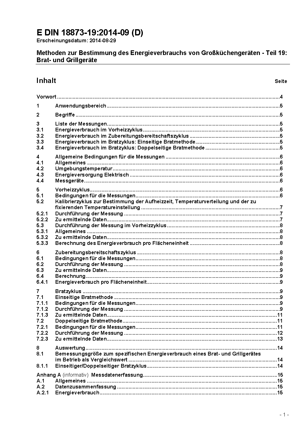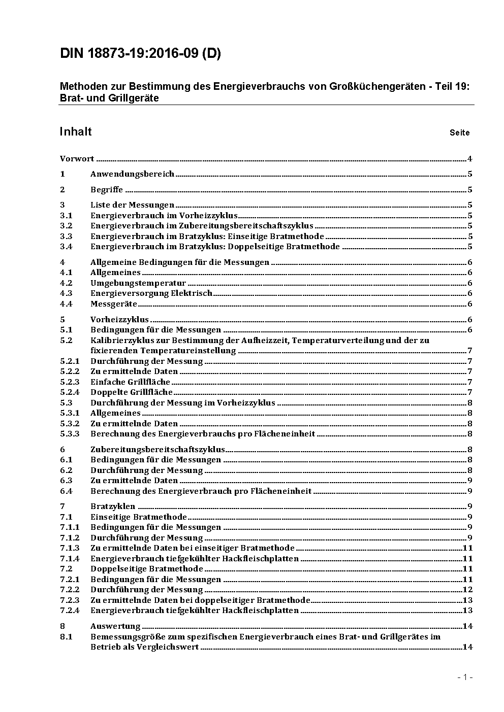 Methoden zur Bestimmung des Energieverbrauchs von Großküchengeräten - Teil 19: Brat- und Grillgeräte