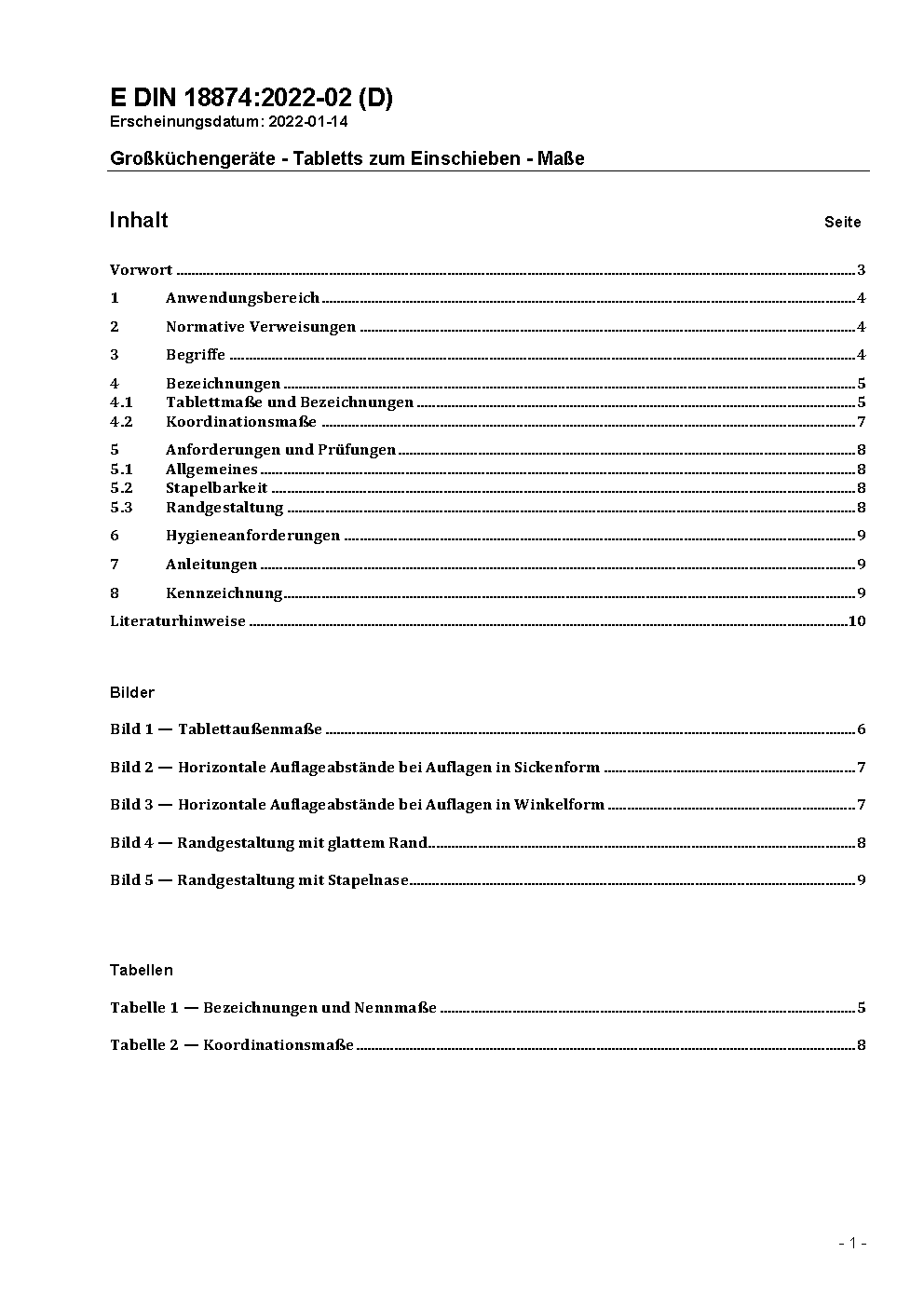 Großküchengeräte - Tabletts zum Einschieben - Maße / Achtung: Daneben gilt DIN 18874 (2011-05) noch bis 2024-03-31.
