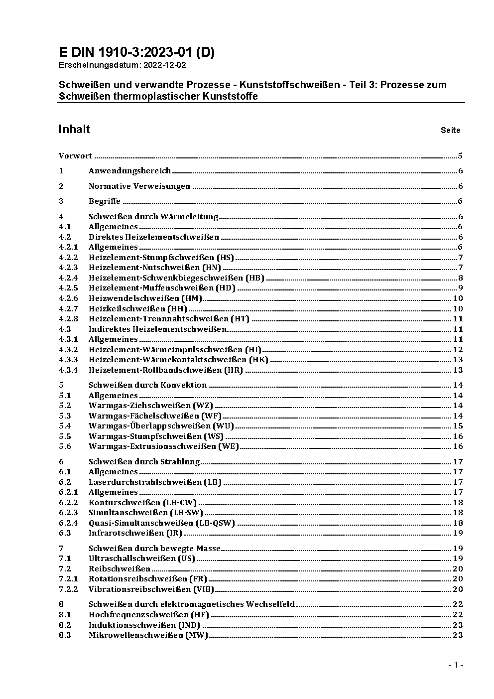 Schweißen - Schweißen von Kunststoffen - Verfahren