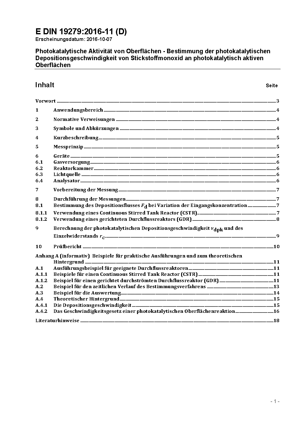Photokatalytische Aktivität von Oberflächen - Bestimmung der photokatalytischen Depositionsgeschwindigkeit von Stickstoffmonoxid an photokatalytisch aktiven Oberflächen