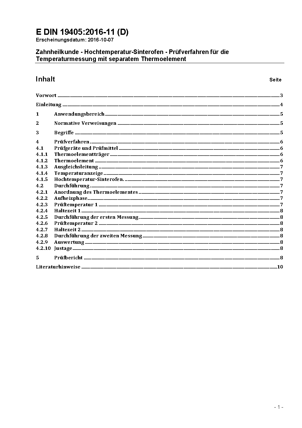 Zahnheilkunde - Hochtemperatur-Sinterofen - Prüfverfahren für die Temperaturmessung mit separatem Thermoelement