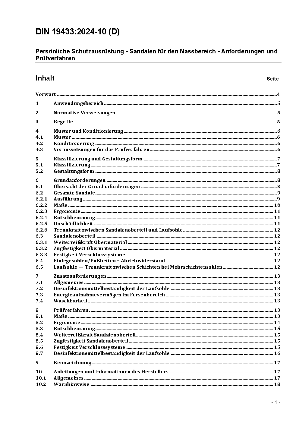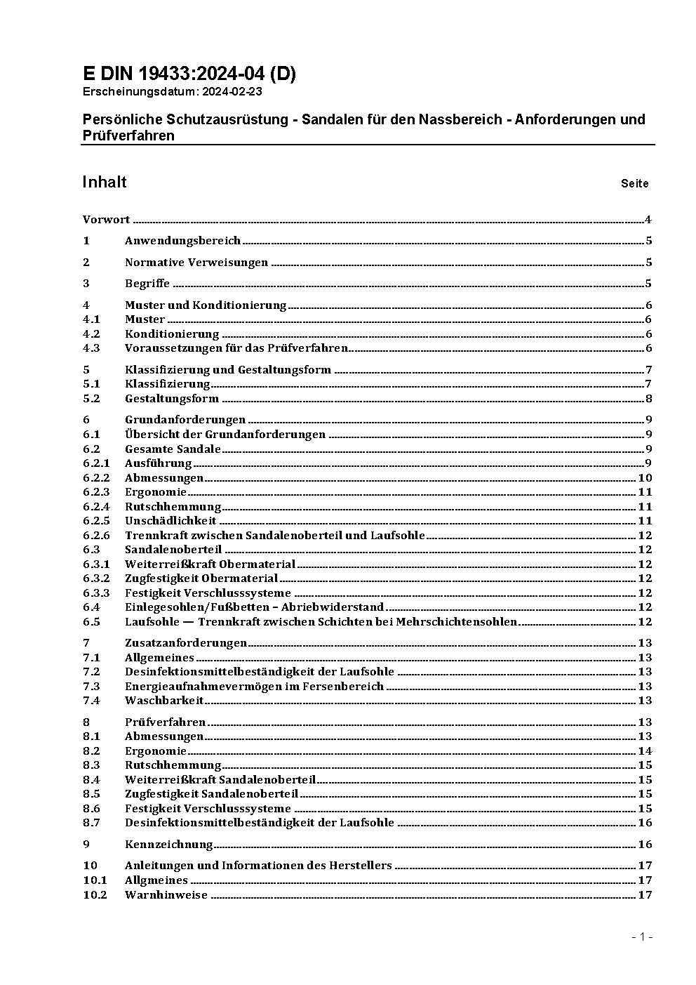 Persönliche Schutzausrüstung - Sandalen für den Nassbereich - Anforderungen und Prüfverfahren