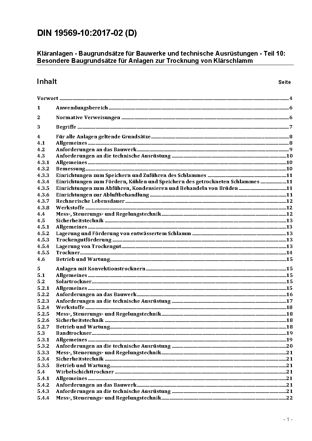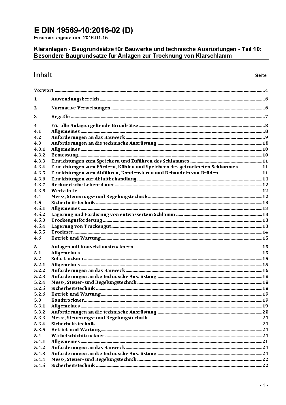 Kläranlagen - Baugrundsätze für Bauwerke und technische Ausrüstungen - Teil 10: Besondere Baugrundsätze für Anlagen zur Trocknung von Klärschlamm