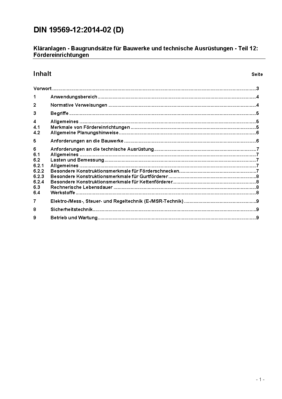 Kläranlagen - Baugrundsätze für Bauwerke und technische Ausrüstungen - Teil 12: Fördereinrichtungen