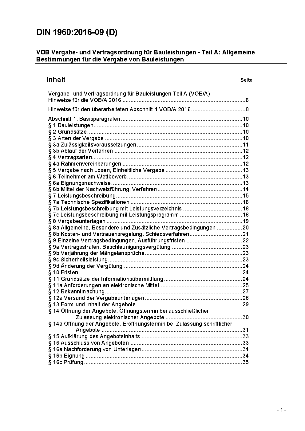 VOB Vergabe- und Vertragsordnung für Bauleistungen - Teil A: Allgemeine Bestimmungen für die Vergabe von Bauleistungen